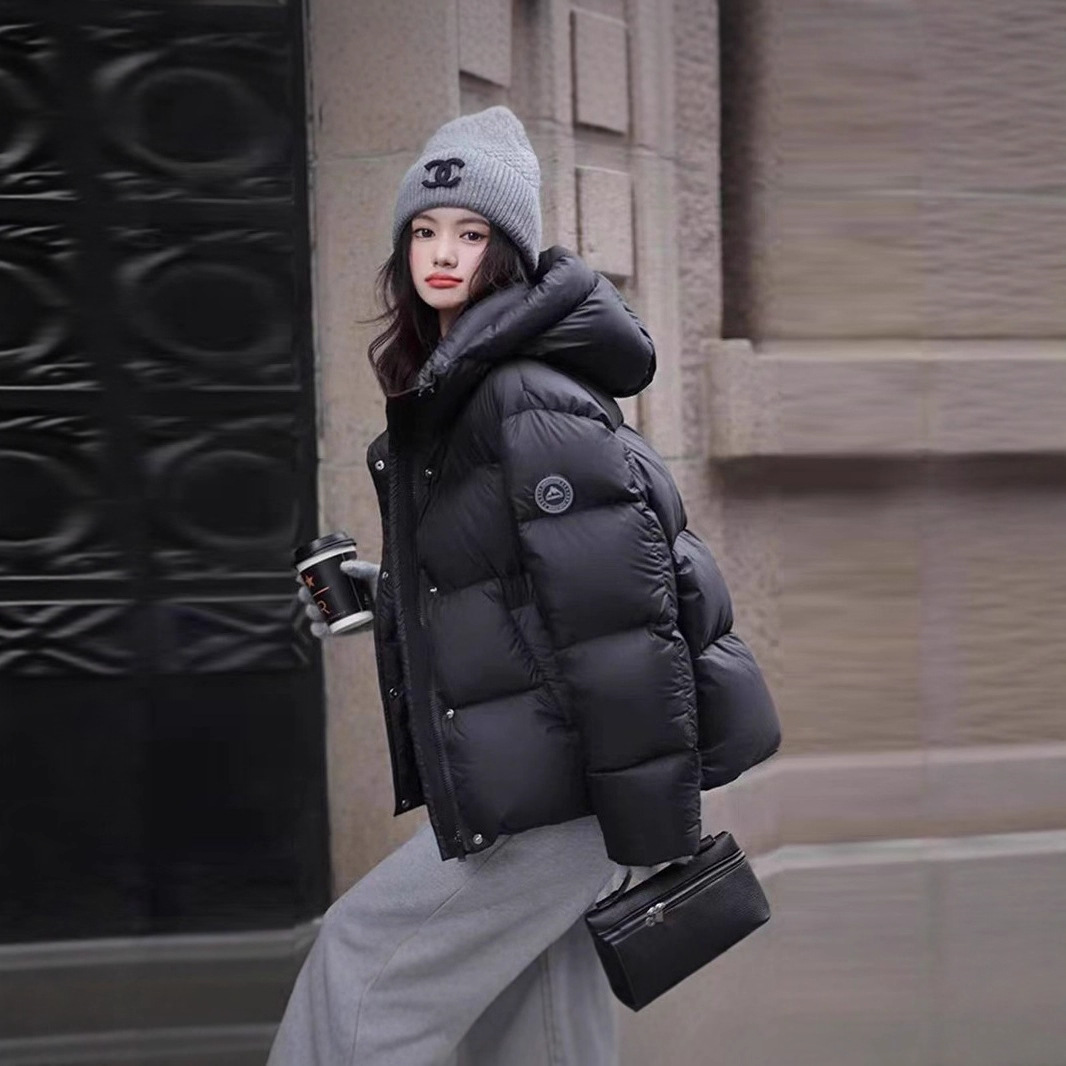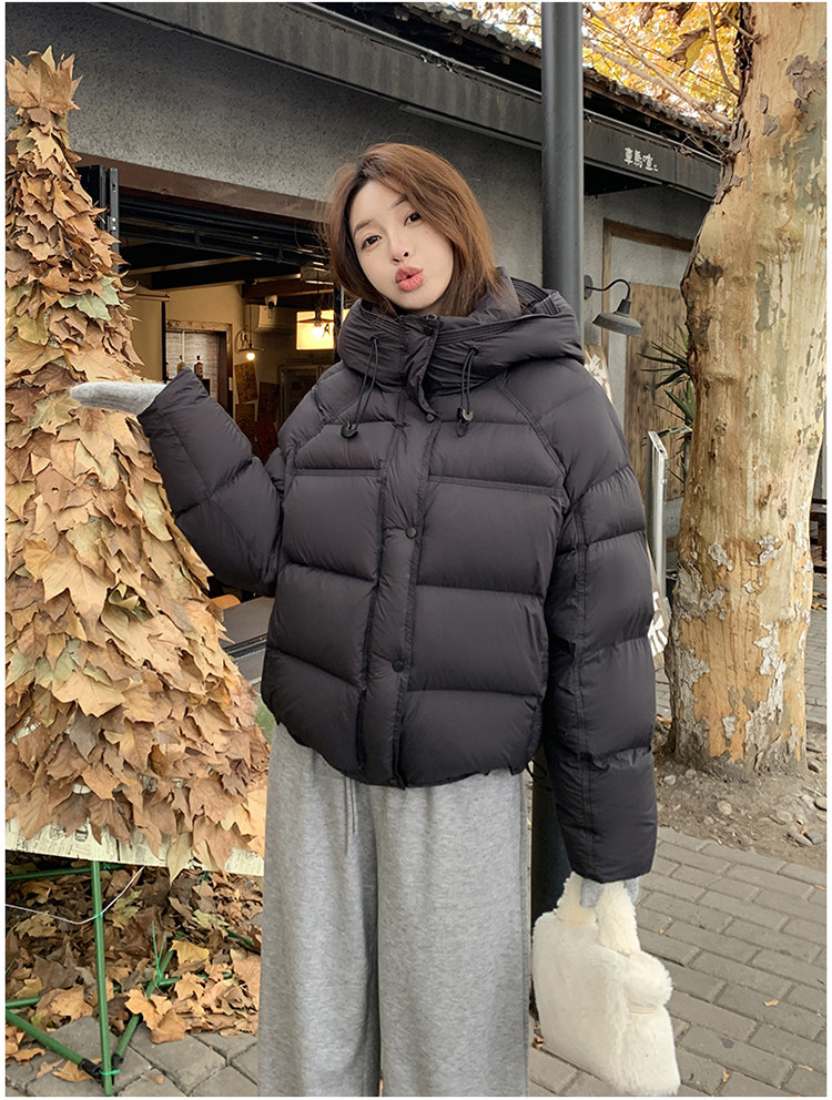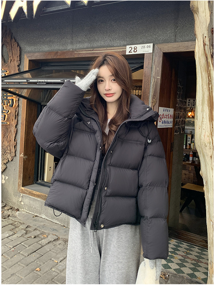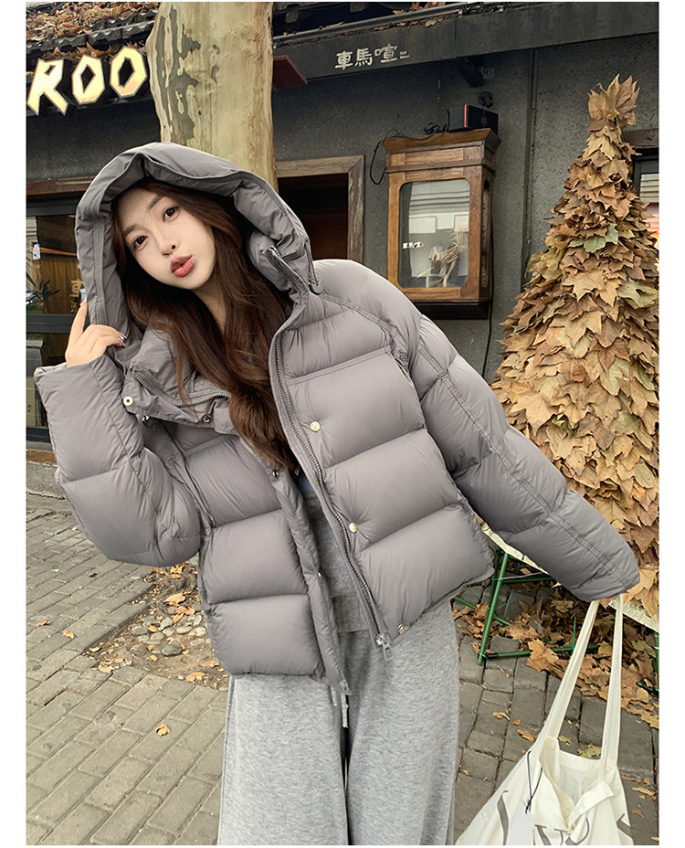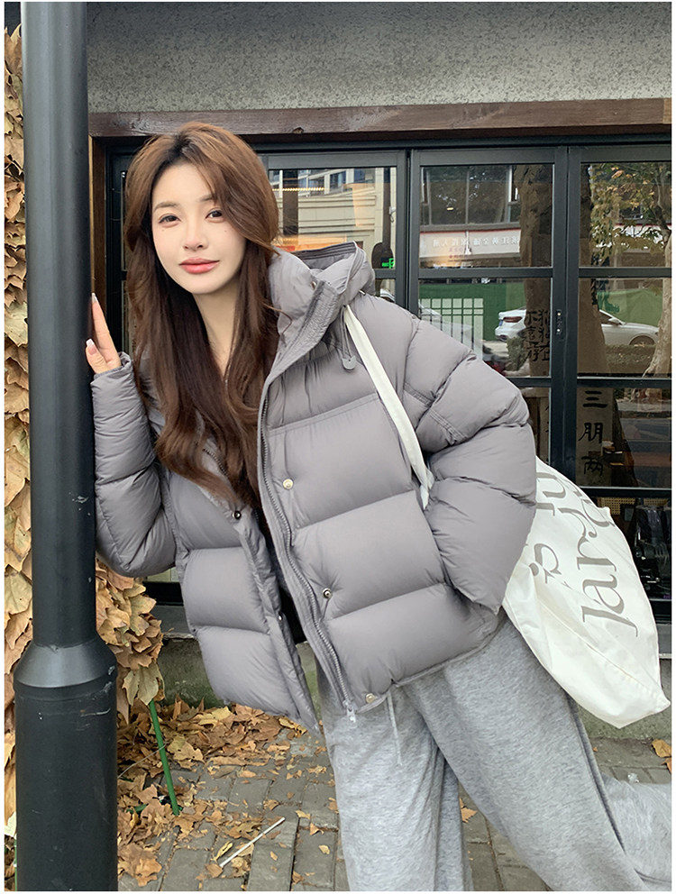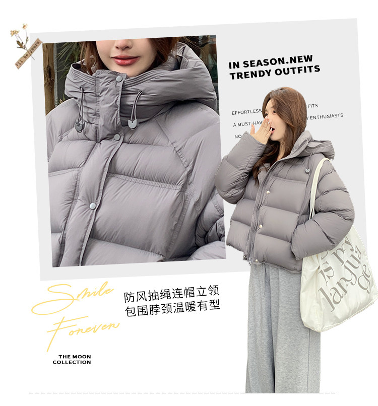 平湖羽绒服女2025冬季新款短款连帽宽松面包服加厚白鸭绒保暖外套