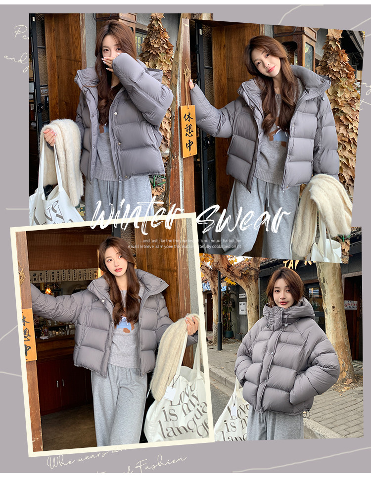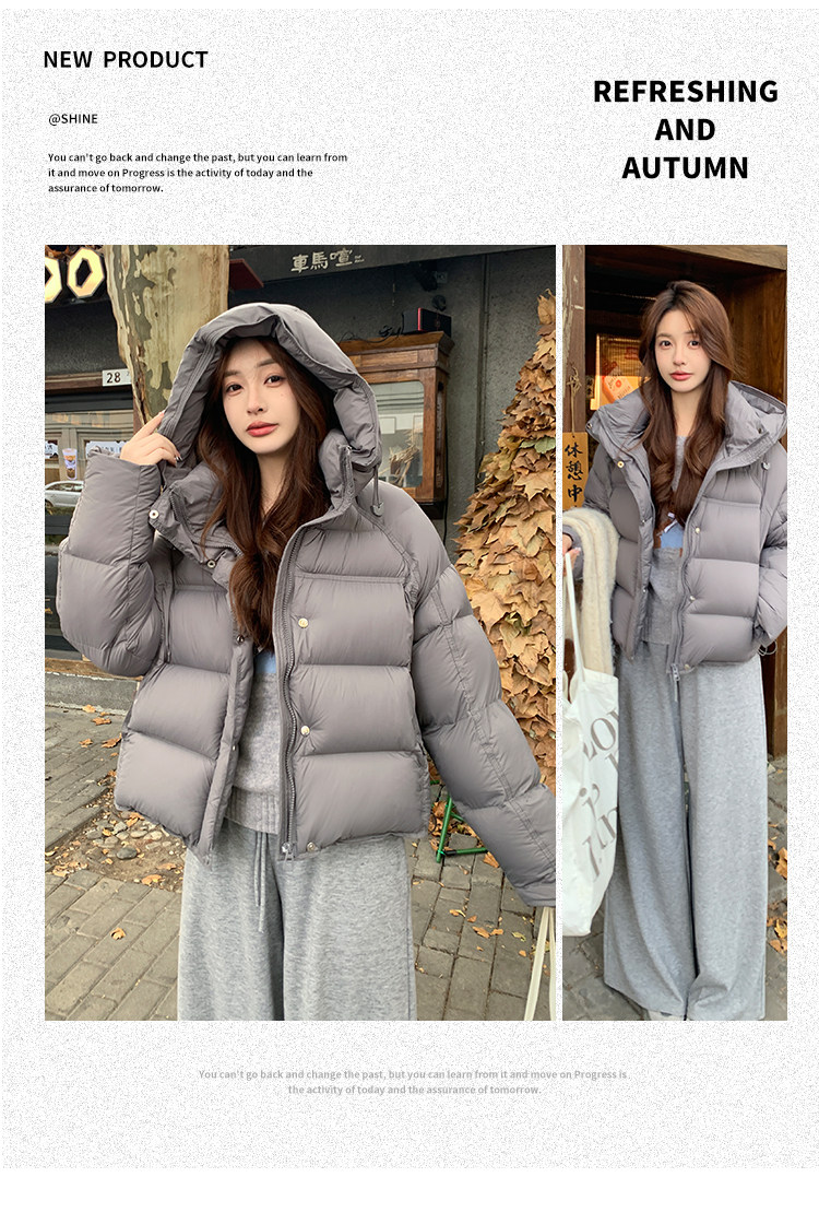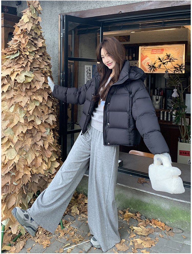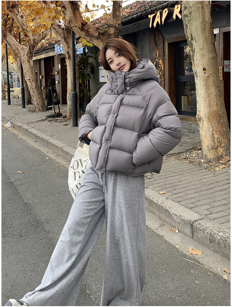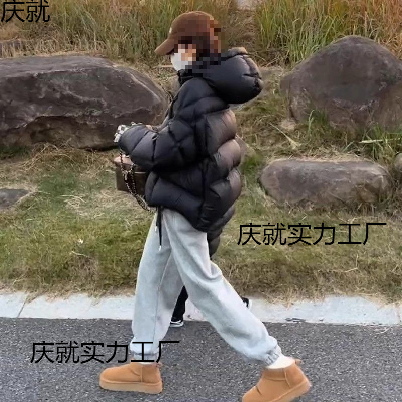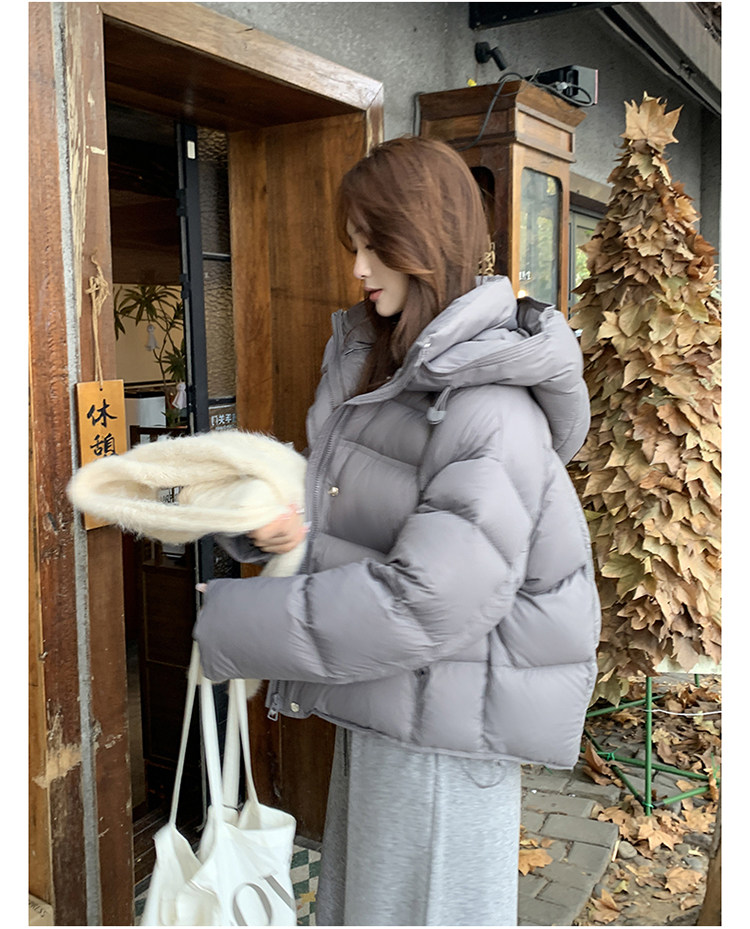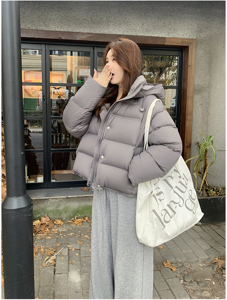 平湖羽绒服女2025冬季新款短款连帽宽松面包服加厚白鸭绒保暖外套