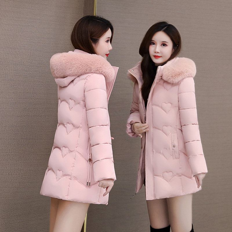 ダウンコットンジャケット ファッション レディース ミドル丈 2025年新作 厚手 暖かい 韓国風 スリムフィット 細見え ビッグファー襟付きコート