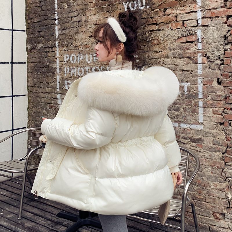 ダウンジャケットレディースショート2025新スタイル洗濯不要光沢のある暖かいルーズ大きな毛皮の襟厚みのあるレディースコート防寒