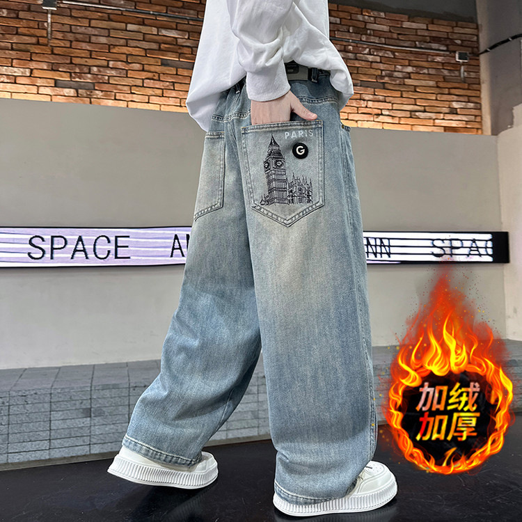 秋冬加绒加厚新款男童牛仔裤春秋款中大童儿童直筒裤子宽松潮男孩