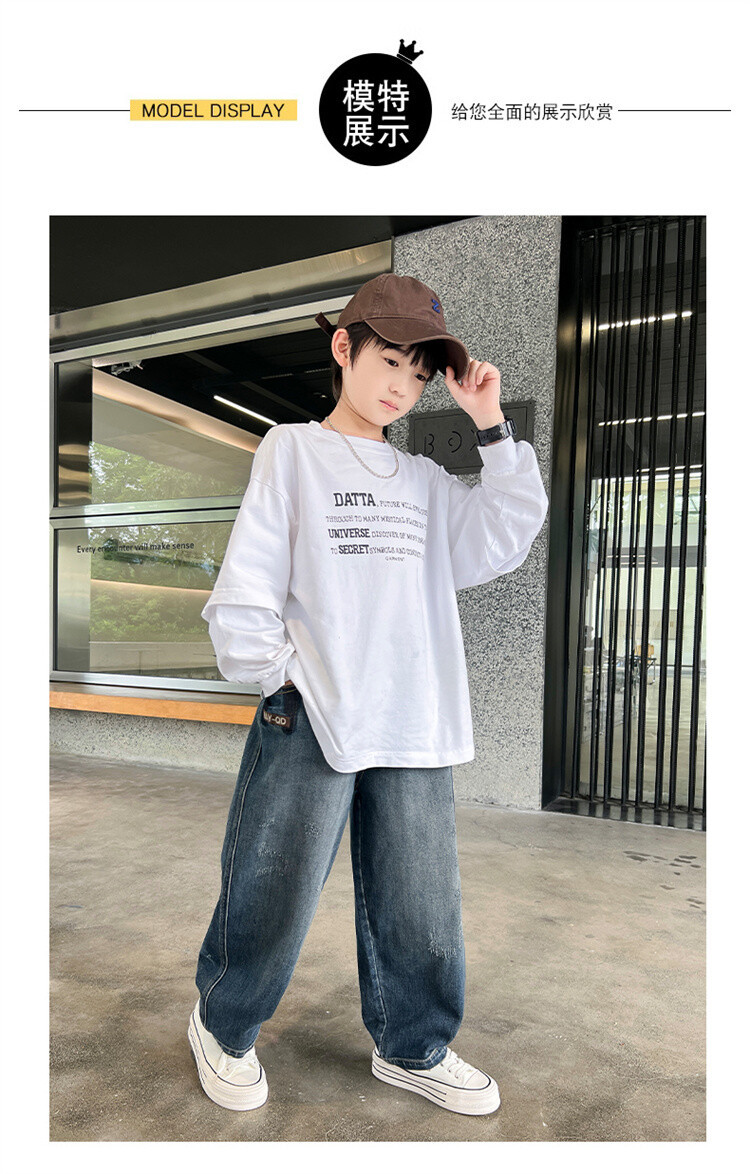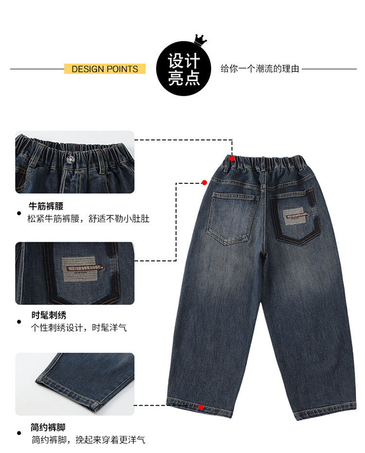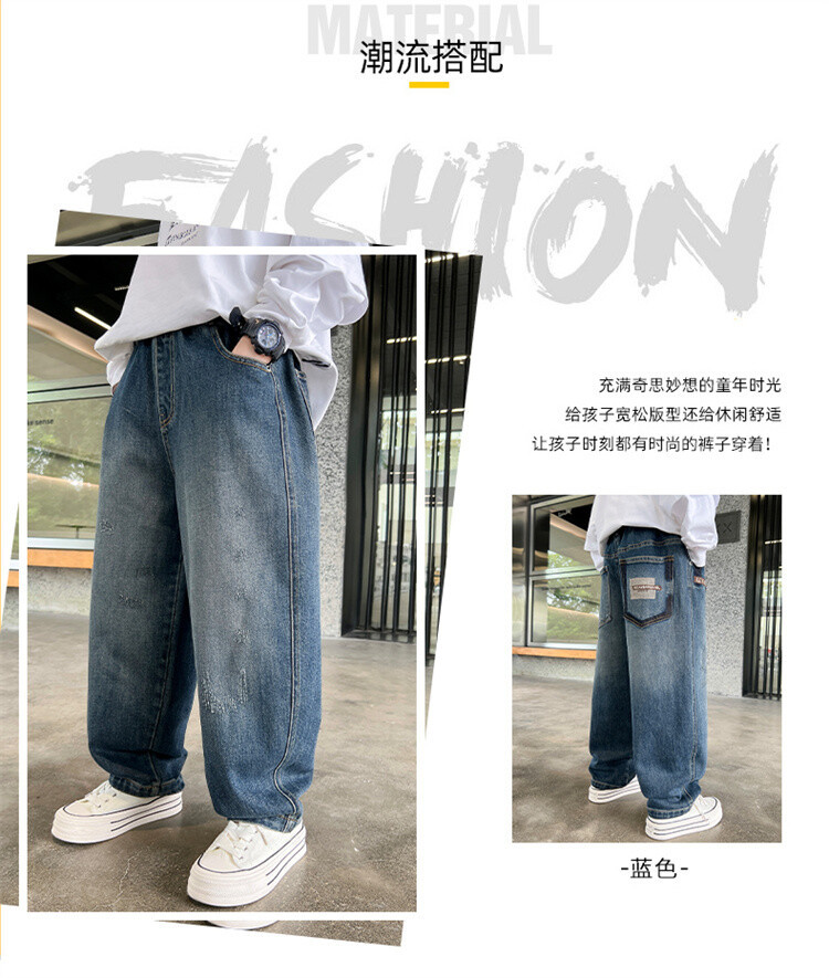 新款春秋男童牛仔裤子男孩子裤子长裤2024中大儿童休闲宽松直筒潮