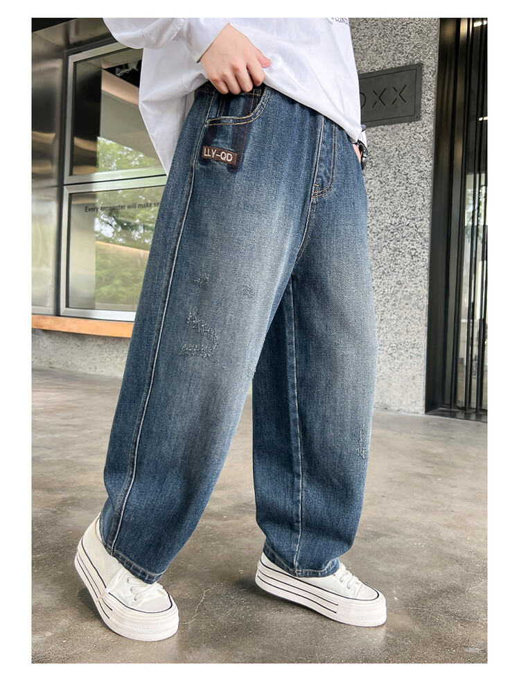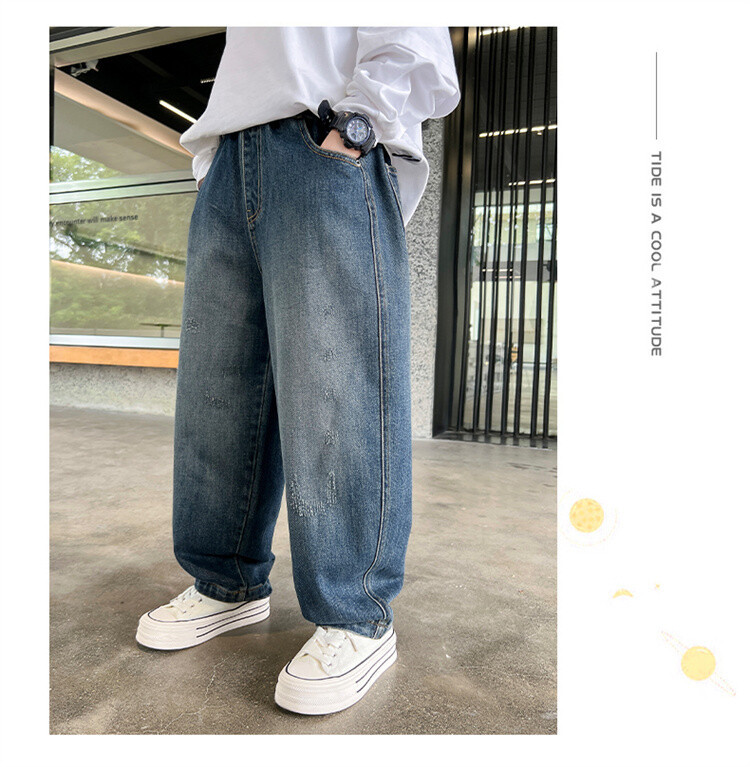 新しい春と秋の男の子のデニムのズボンの男の子のズボンの長ズボンの2024の大きい子供のレジャーのゆったりしているまっすぐな筒の潮