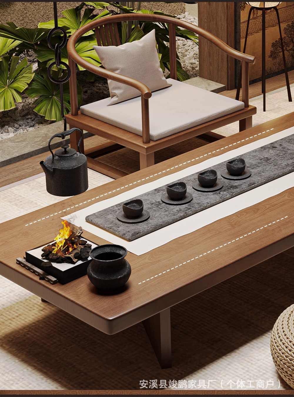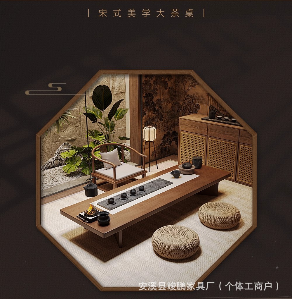 宋代美学实木大板茶桌椅组合阳台榻榻米禅意茶几家用客厅创意茶台