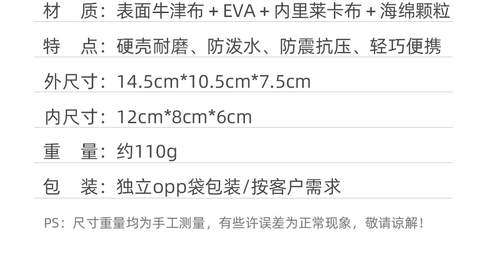 规格 CCD相机包:12*8*6cm(内尺寸)