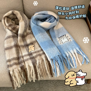 秋冬スカーフ レディース 冬用 イミテーションカシミヤスカーフ 韓国風 雰囲気のあるネックウォーマー 保温性のあるチェック柄スカーフ 軽やかな高級感