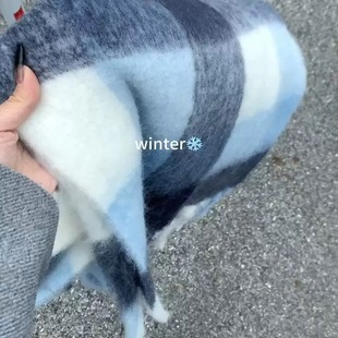 韓国風雰囲気のブルーモヘア高級ニットスカーフ、多用途レディース冬用レッドスカーフ