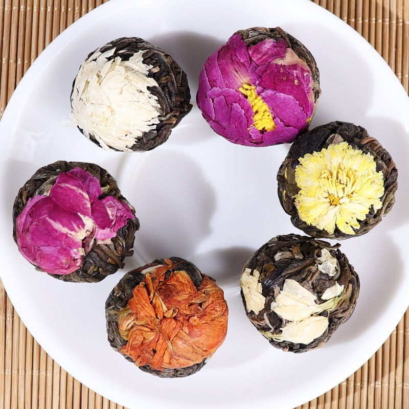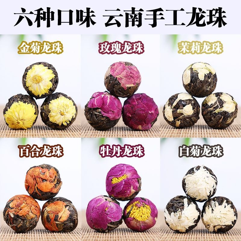 卸売り雲南プーアル茶龍珠花茶ジャスミン百合牡丹黄菊薔薇白菊六味龍珠花茶