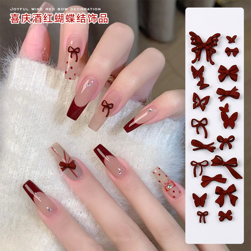 新年のワインレッドの蝶結びのネイルアクセサリーの合金の蝶ネクタイのリボンが漂っています。