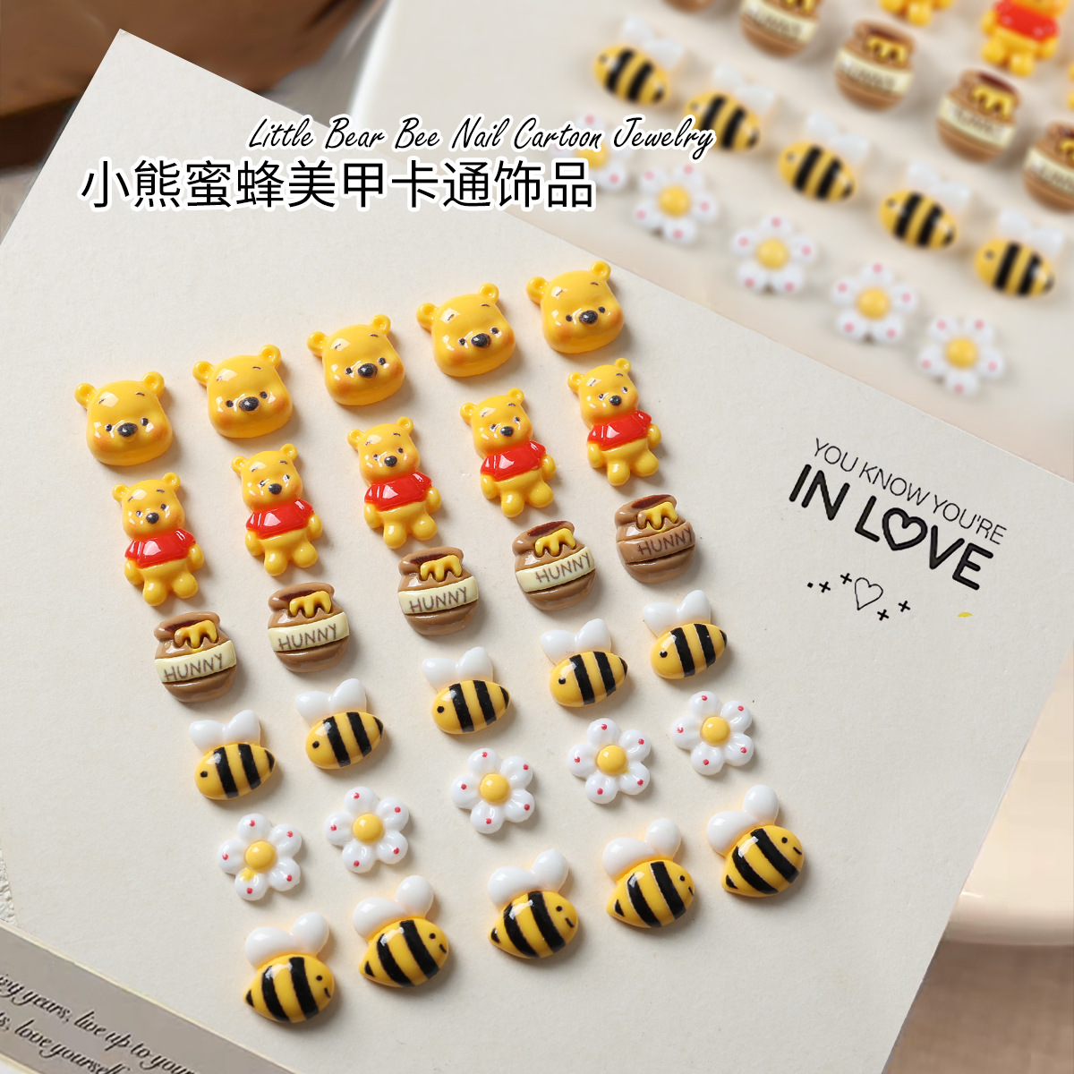新款小熊卡通美甲饰品可爱蜜蜂太阳花树脂diy穿戴甲美甲配饰批发