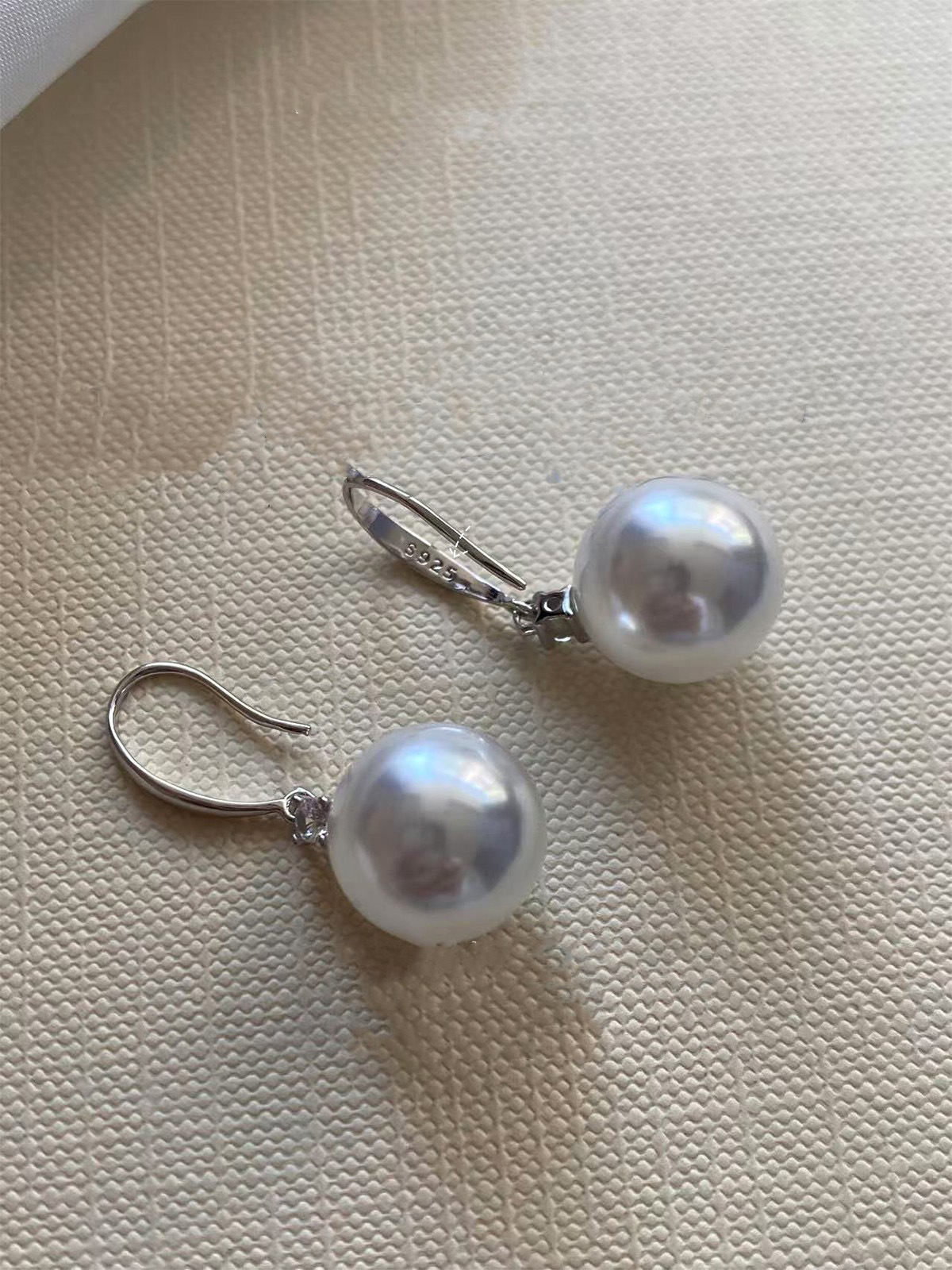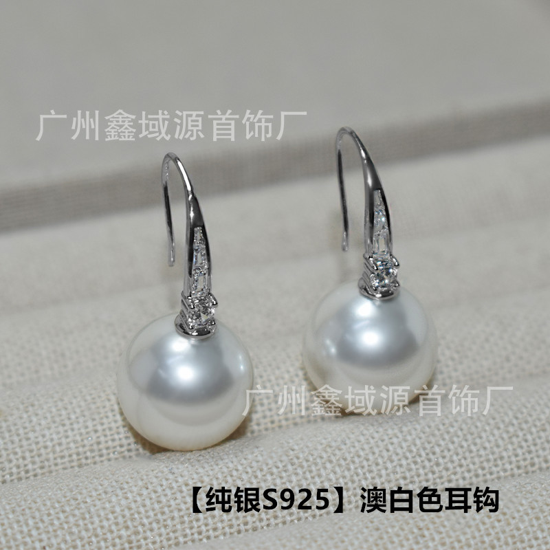 正品纯银澳白色耳钉大珍珠耳环女2025新款爆款高级感耳钩耳坠耳饰