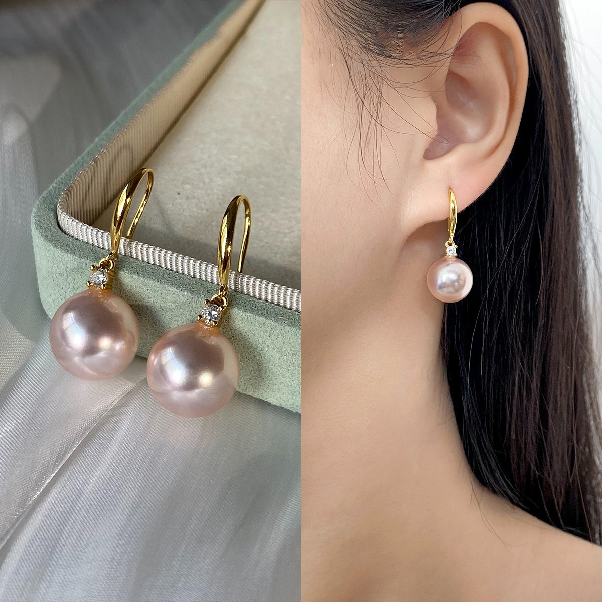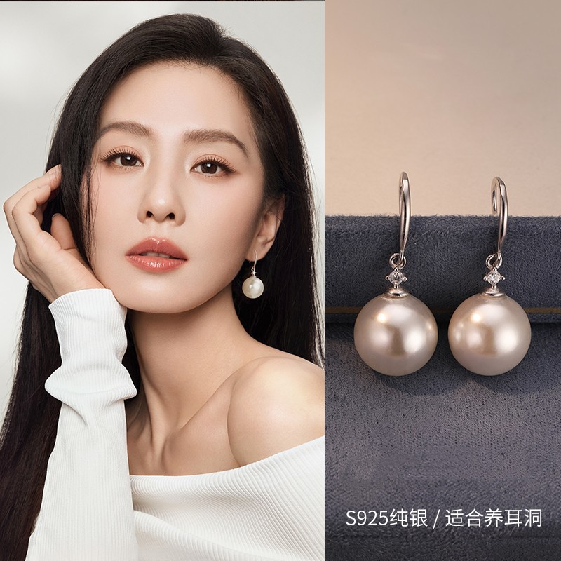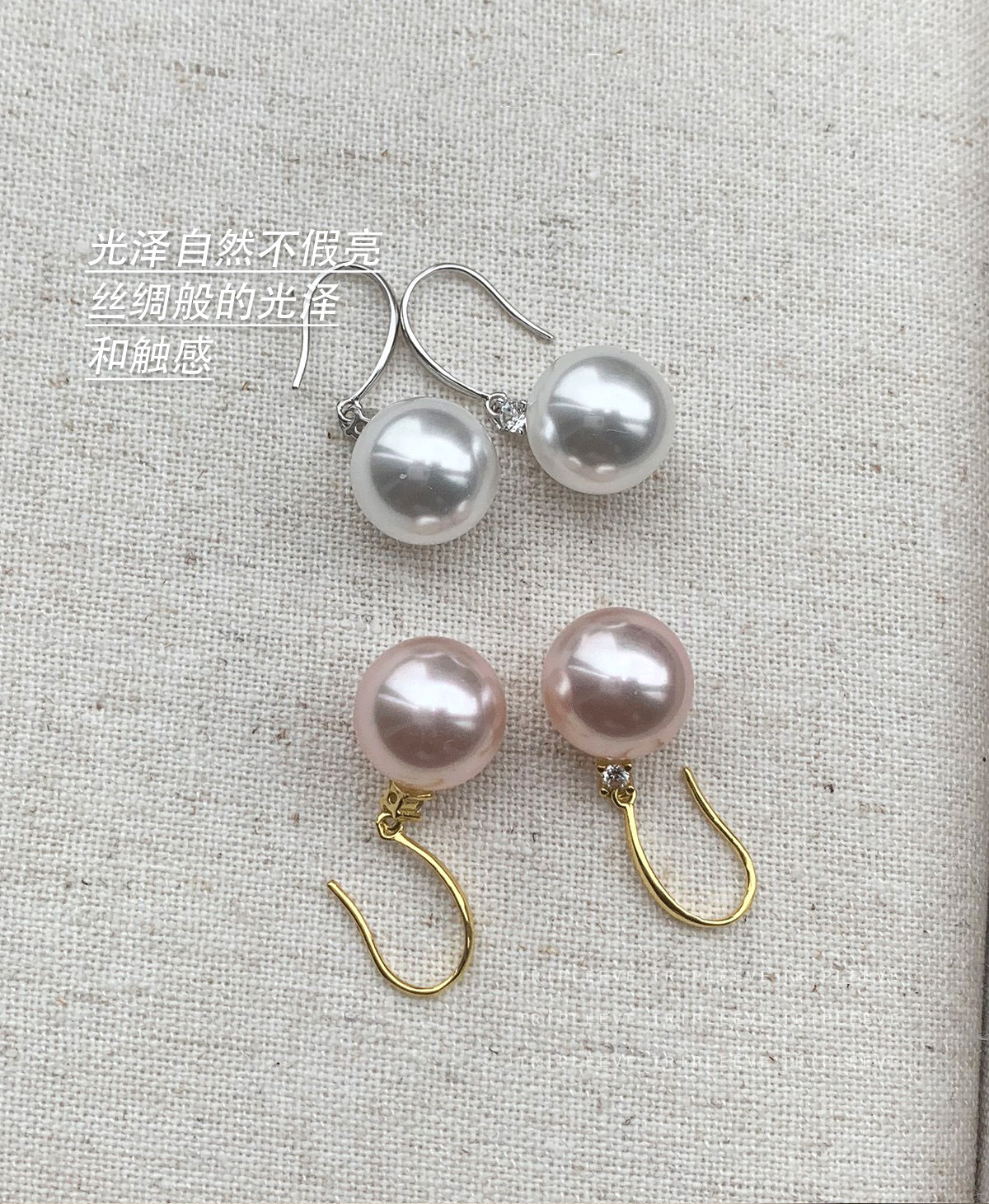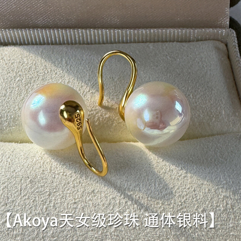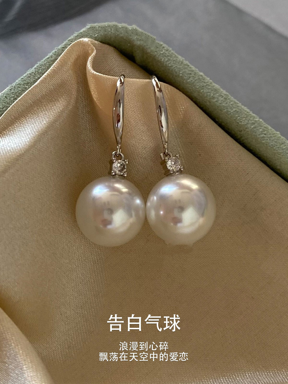 s925纯银耳饰告白气球耳坠钩施家粉光天女akoya珍珠耳环ins风耳钉