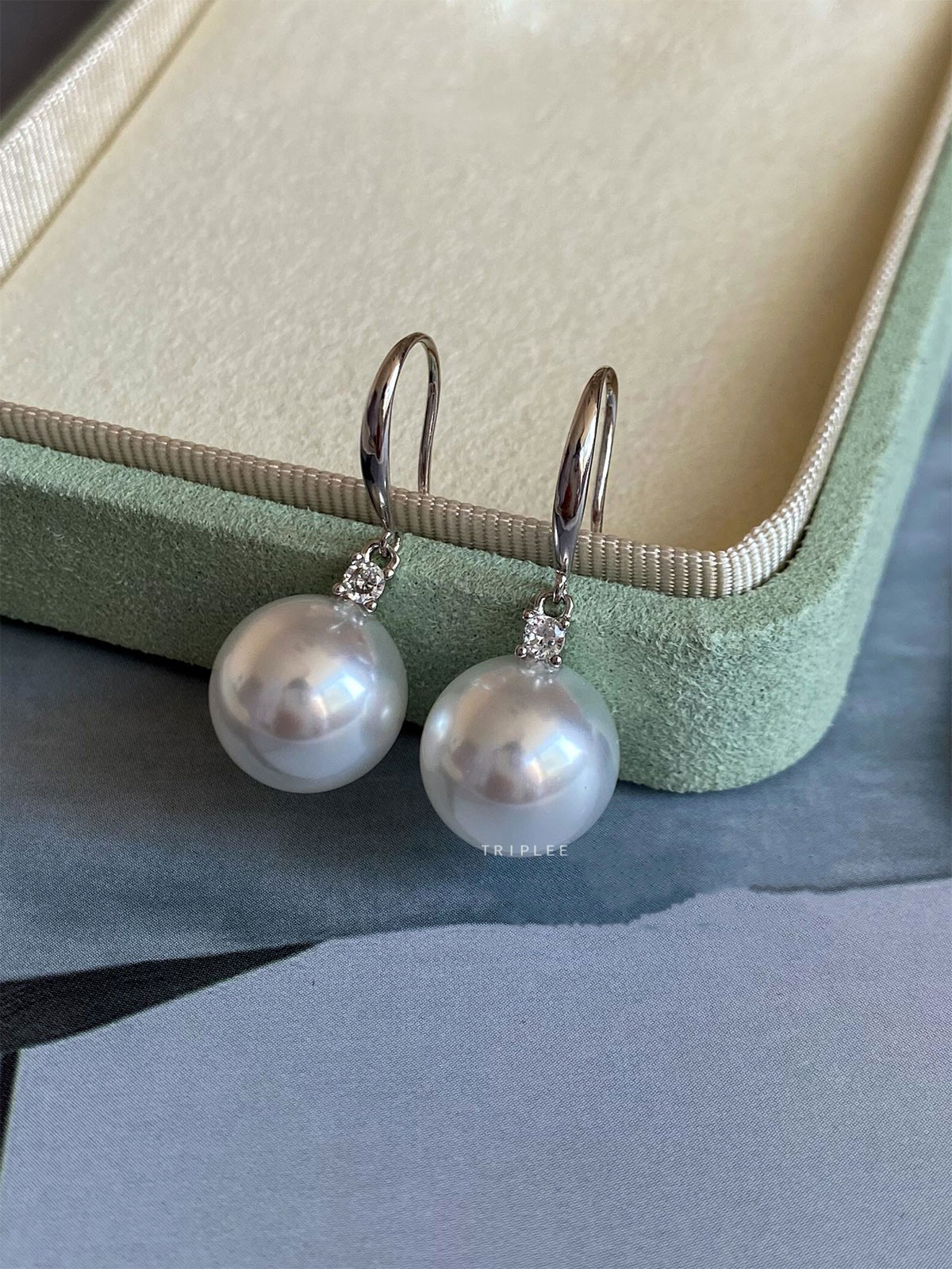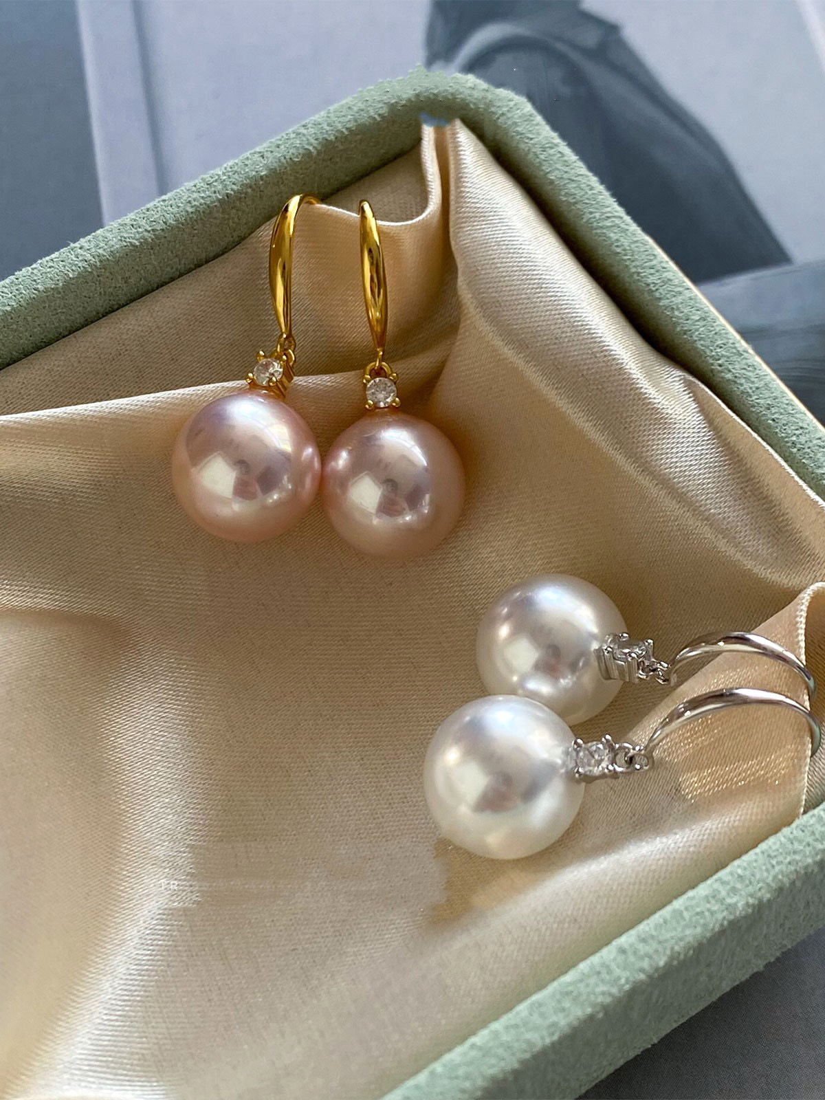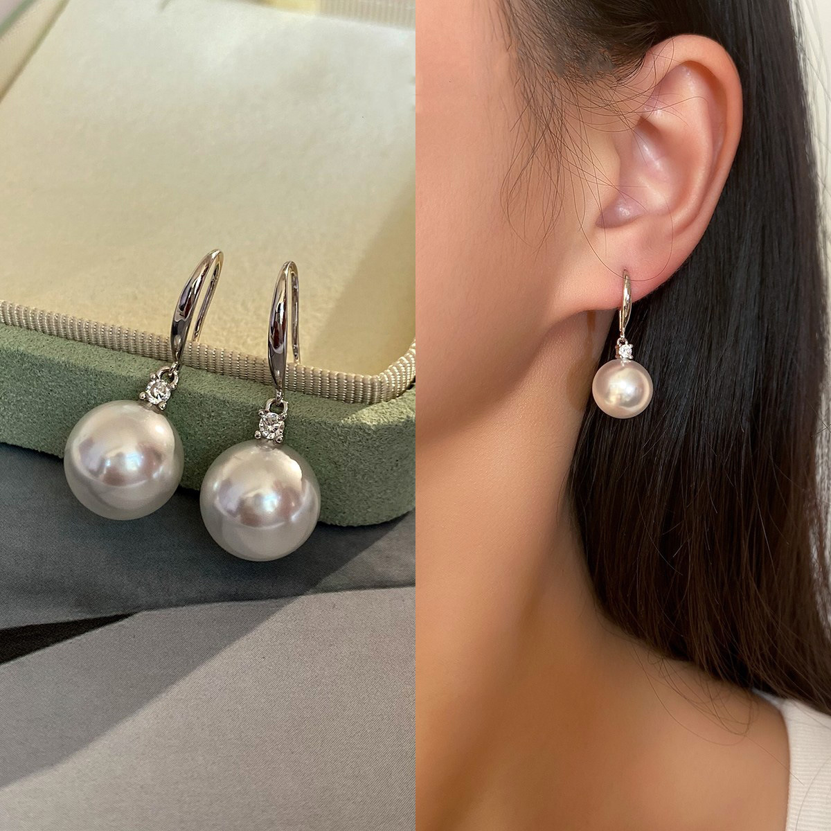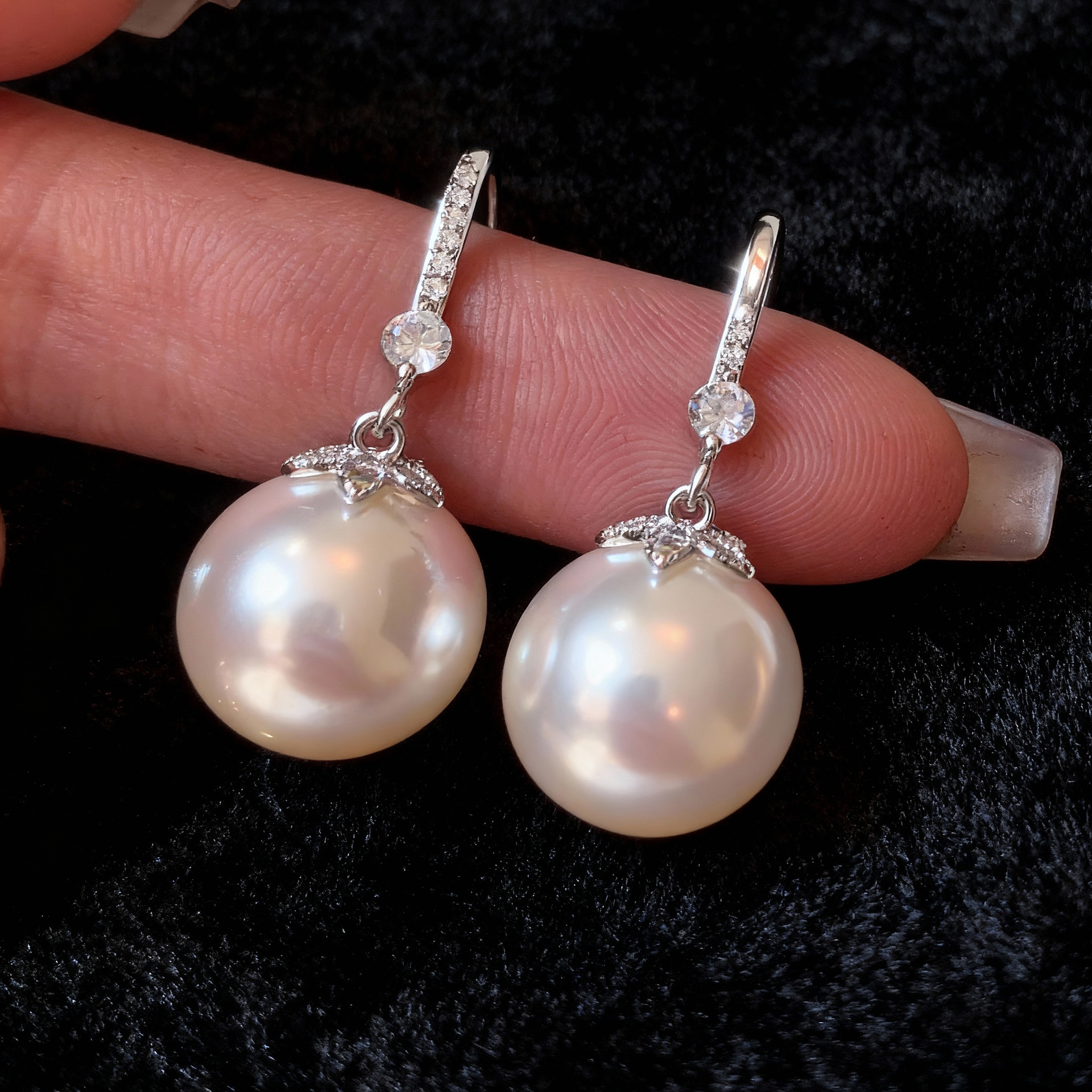 【S925シルバー】シングルジルコニアパールイヤリング、貝殻パールイヤリング、オーストラリア産ホワイトパールイヤリング、高級感のある軽やかな豪華イヤリングフック