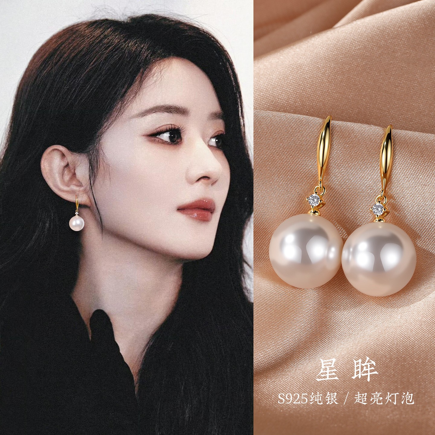 刘亦菲同款珍珠耳环女款S925纯银耳坠强光轻奢高级感气质长款耳钩