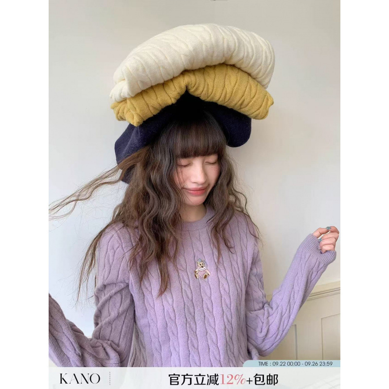 你好卡农 原创小熊刺绣麻花针织衫毛衣女秋季2025新款设计感上衣