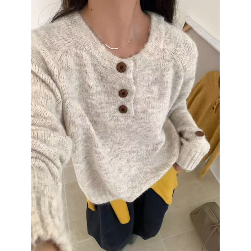 韩系圆领软糯慵懒风针织衫2025秋季新款时尚气质百搭减龄套头毛衣
