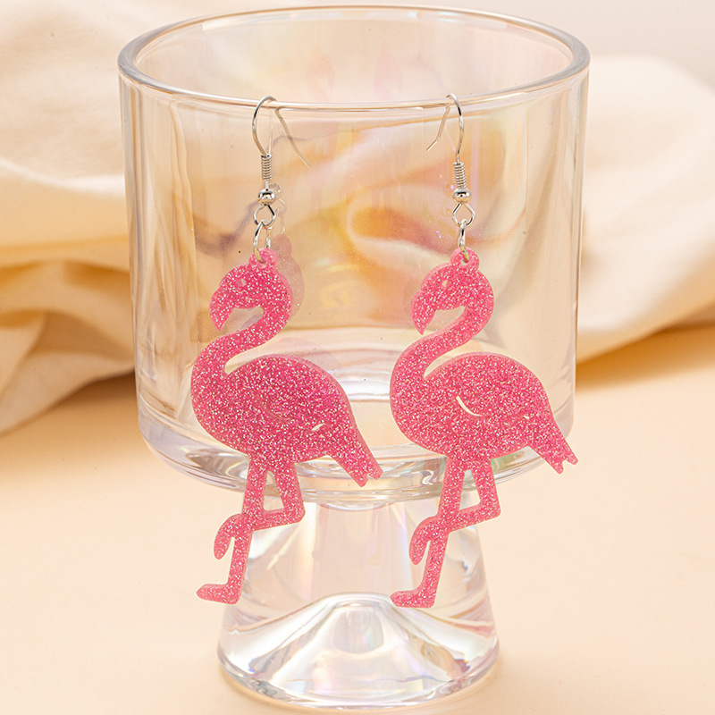 新型越境夏リゾート風閃粉フラミンゴ耳フックピンク舞踏会パーティー欧米女性耳飾りプレゼント