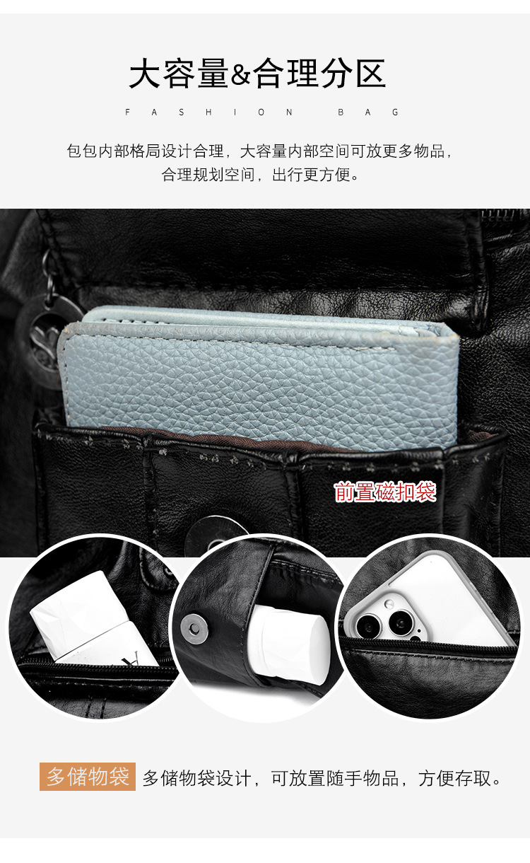 2024秋冬ファッションの新しい胸のバッグの女性のリュックサックの韓国版の縦型は女性のカバンのカジュアルな柔らかい皮の学生のリュックサックをつなぎ合わせます。