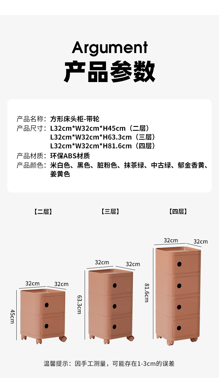 小户型极窄可移动方形多层储物柜子置物收纳柜现代简约卧室床头柜