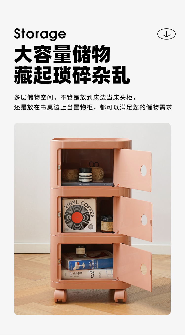 北欧ins移動可能収納棚家庭用ロッカーシンプルリビング置物サイドキャビネットネット赤回転ベッドサイドキャビネット