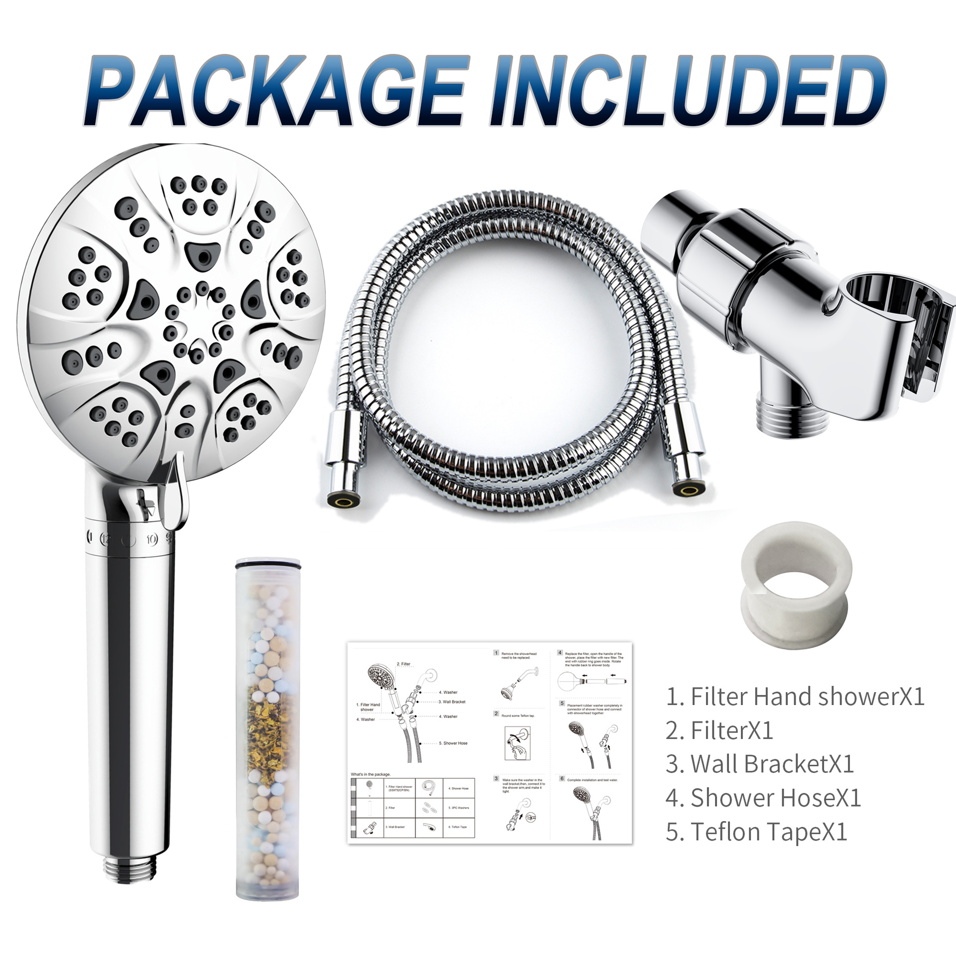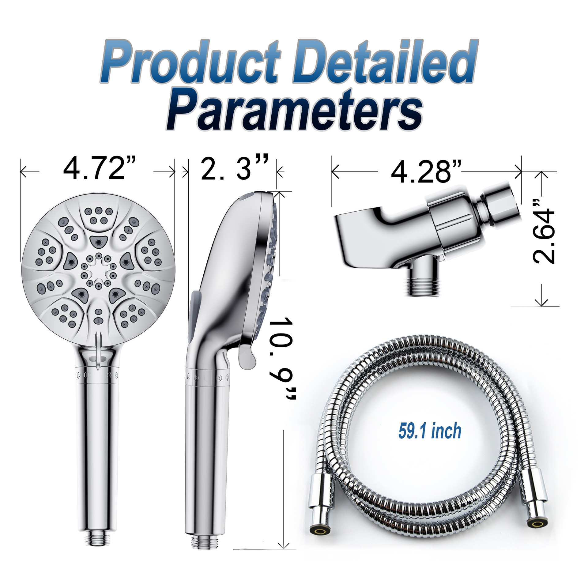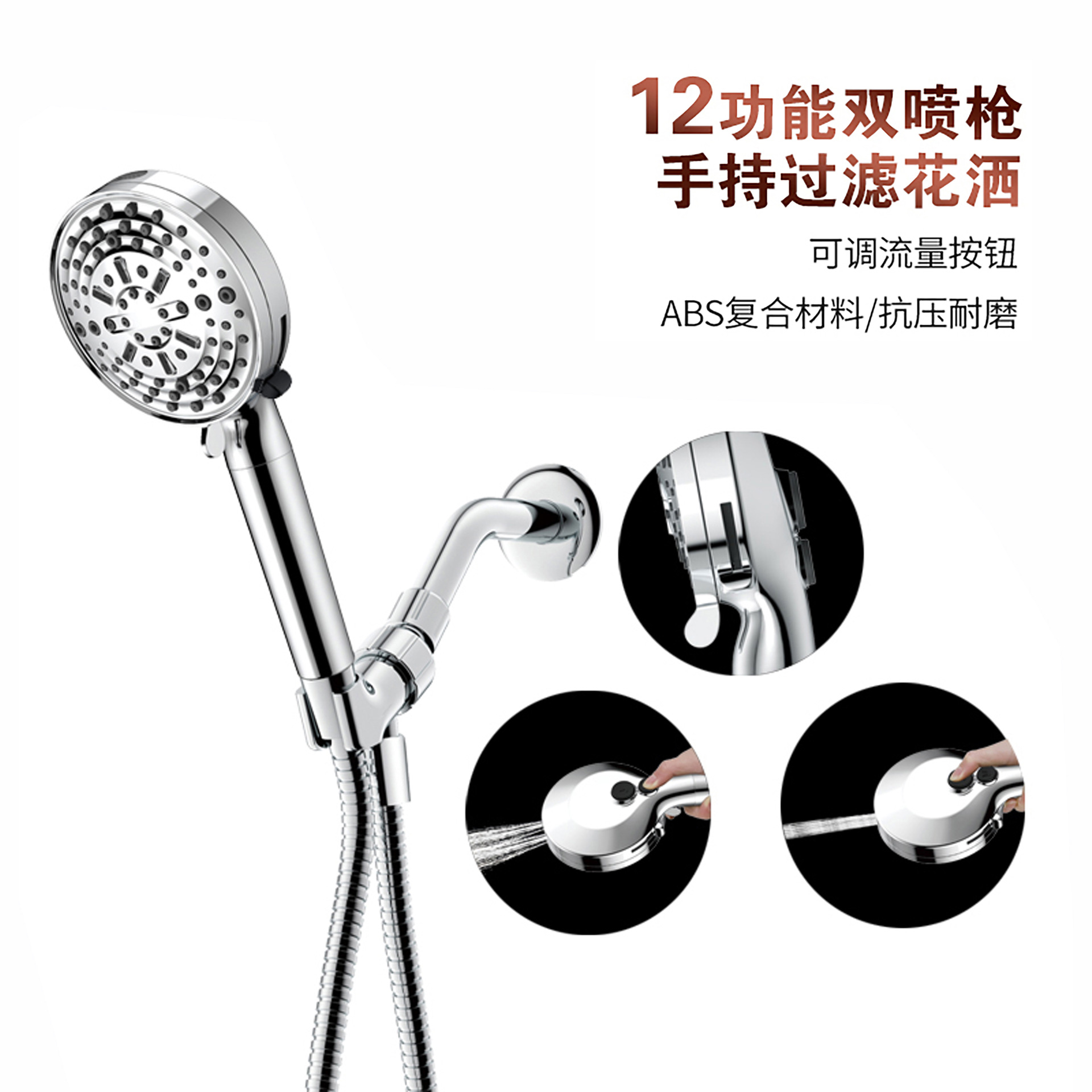 跨境亚马逊北美12功能高压电镀手持花洒外贸卫浴淋浴带过滤花洒
