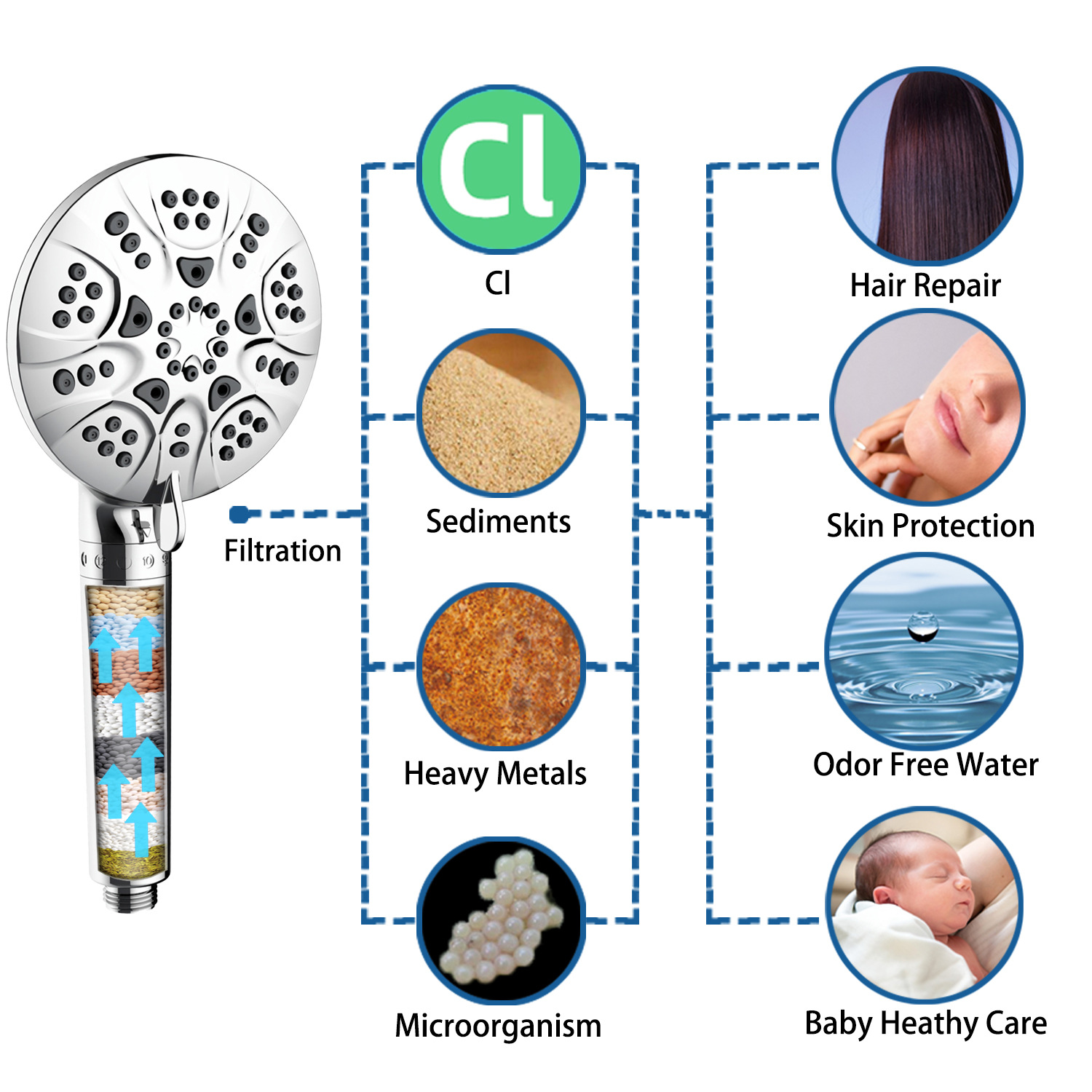 Amazonの人気の25段階フィルタリングスキンビューティーシャワーヘッドアメリカンスタイル6inchスーパーチャージ交換可能なフィルターシャワーヘッド