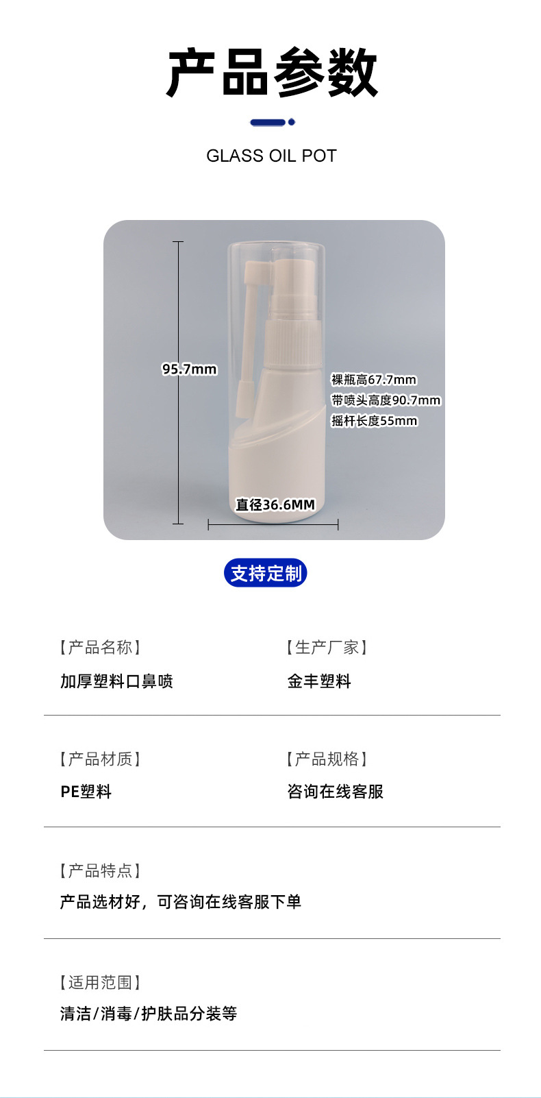 大帽摇杆喷雾瓶象鼻喷瓶塑料瓶口腔喷剂瓶鼻腔清洗剂瓶长杆鼻喷瓶