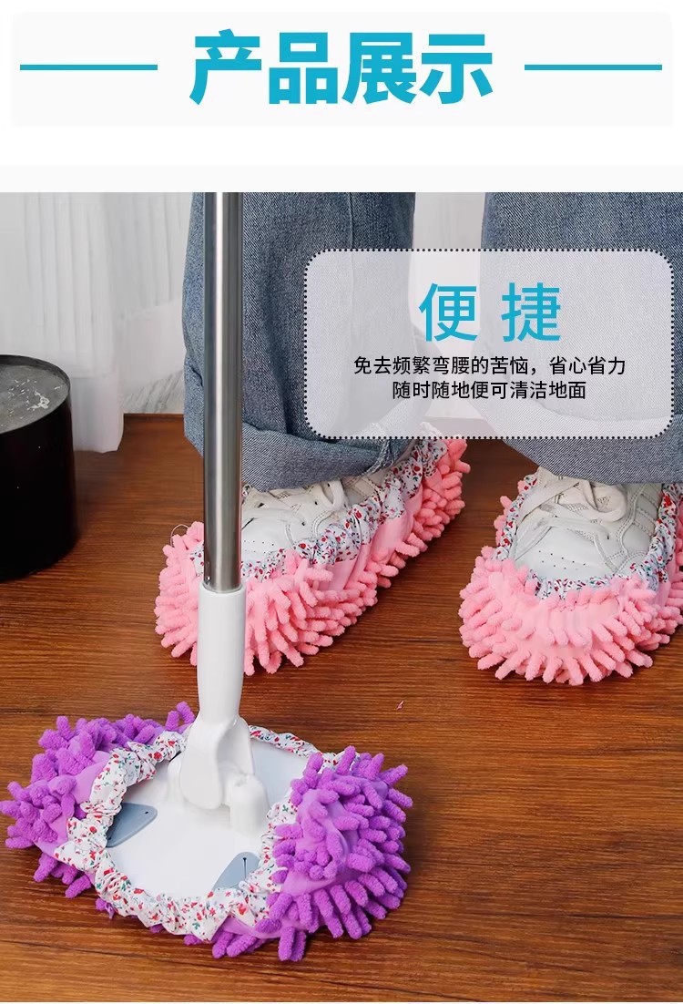 懒人拖地鞋套擦地拖鞋脚踩静音雪尼尔吸水拖布墩布扫地拆洗擦地布