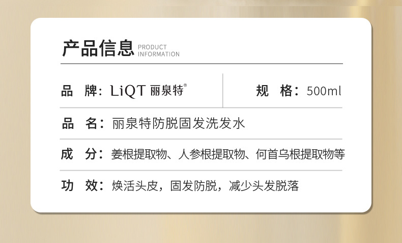 丽泉特淘米防脱育髪シャンプー500ml姜汁防脱固髪山茶種側柏葉シャンプー