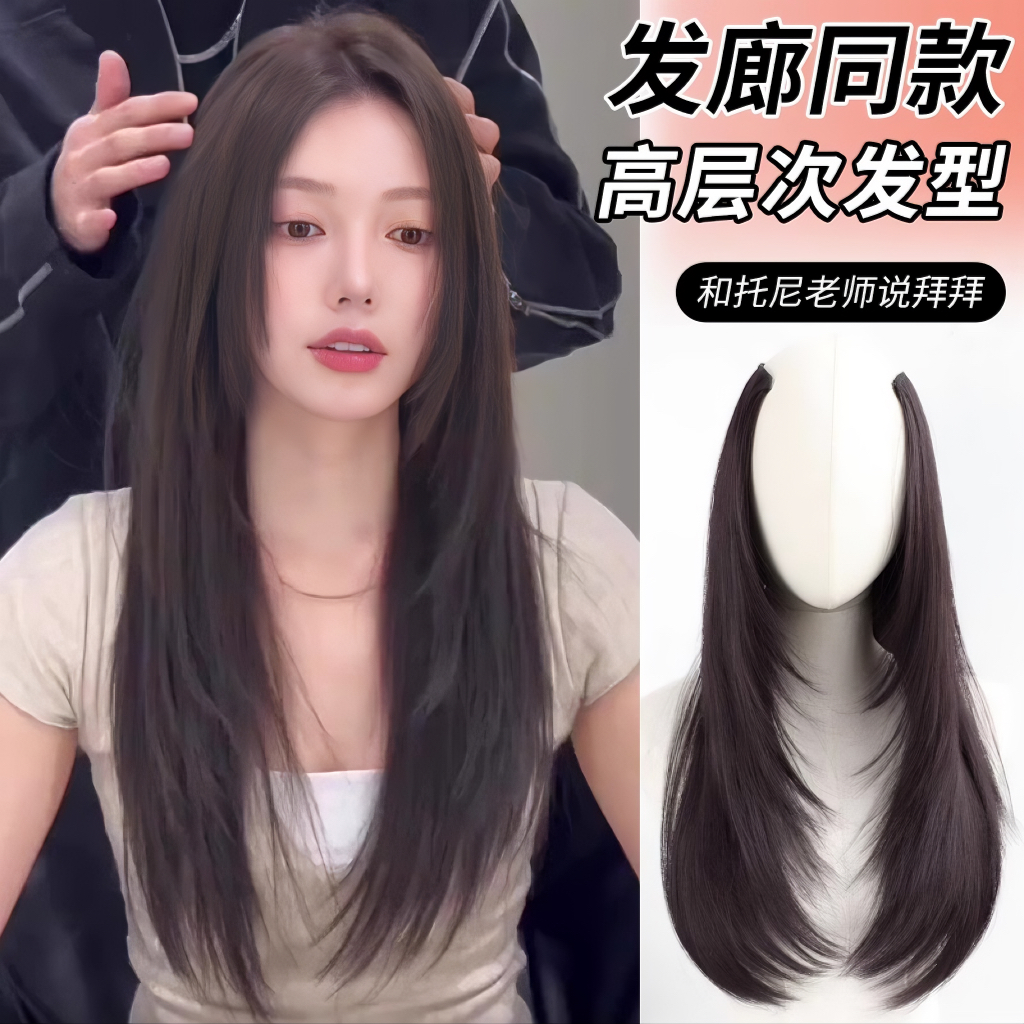 高层次u型假发片女增发量蓬松一片式长直发内卷隐形无痕发片