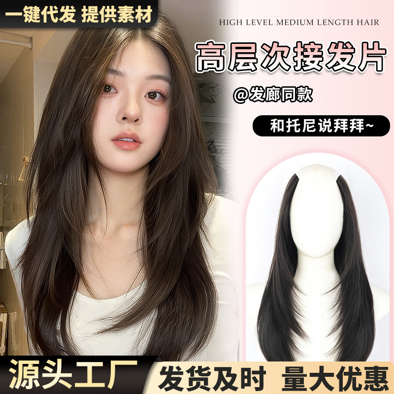跨境假发女神之翼一片式假发片女高层次仿真发接发片轻薄日常发型