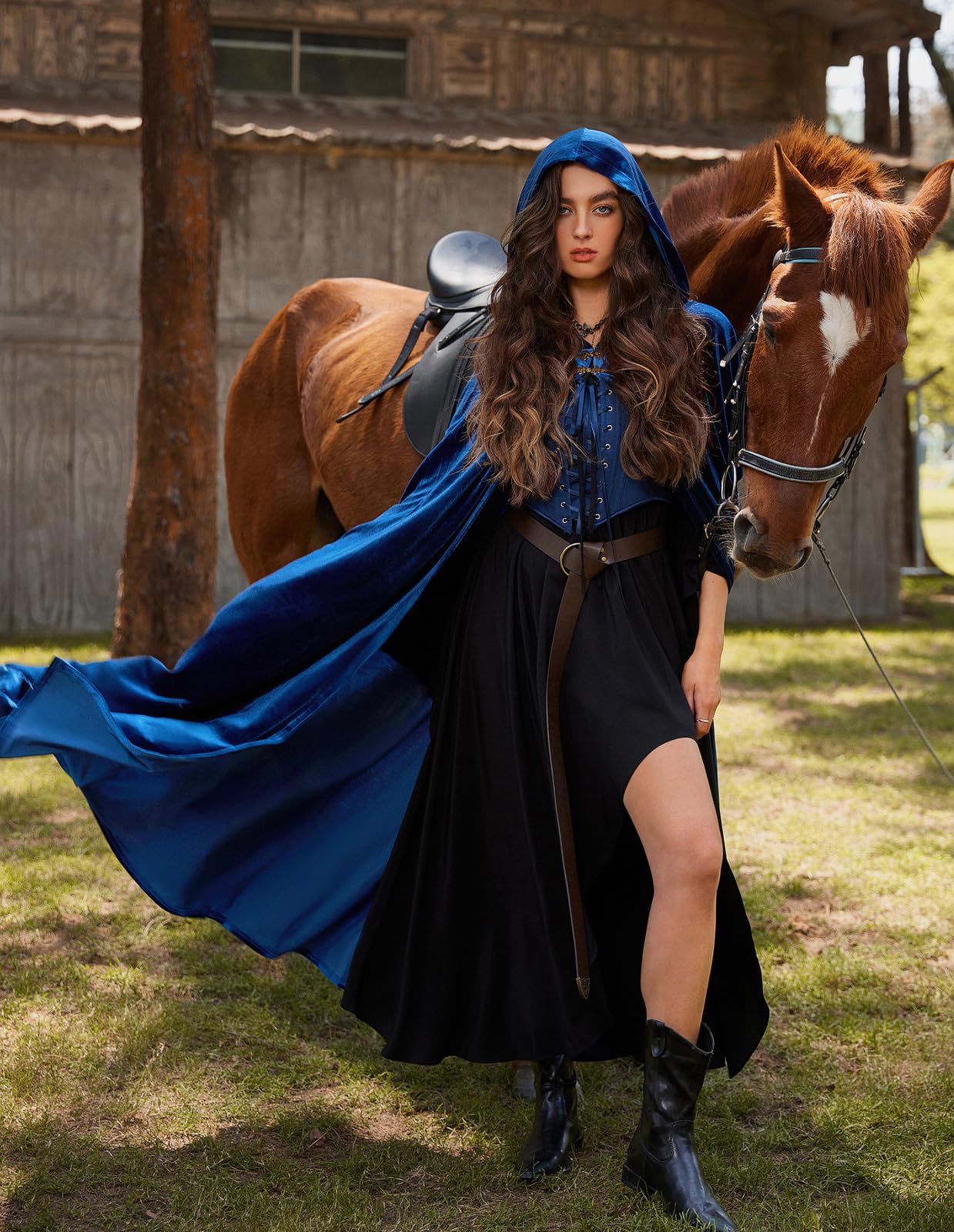 2023アマゾンハロウィーンlarp中世騎士ルネッサンスレトロフード付きマントコスプレショール