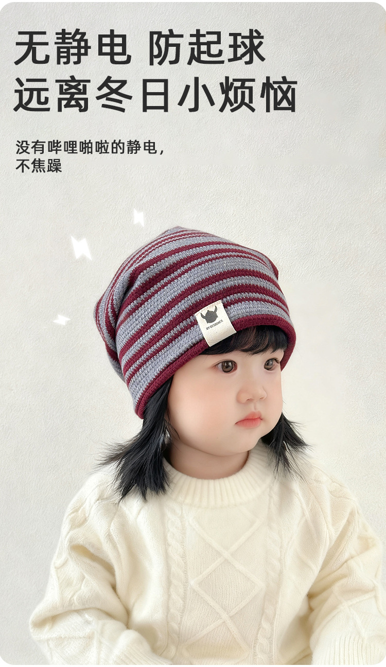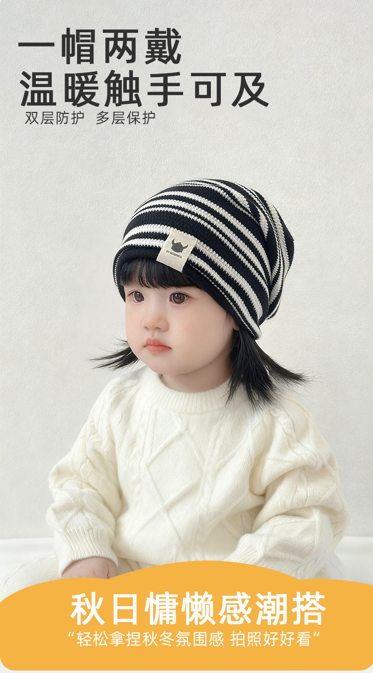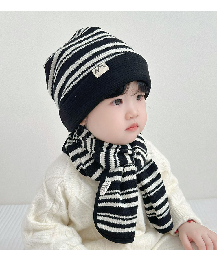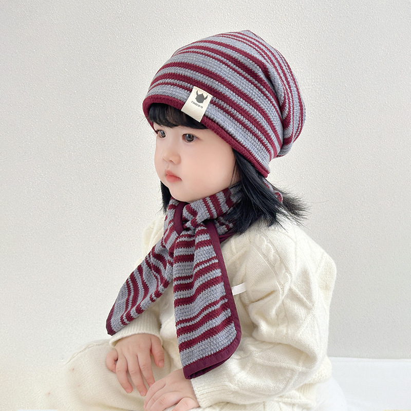 25秋冬季新款儿童帽子围巾两件套装男女童布标条纹套头帽宝宝围脖
