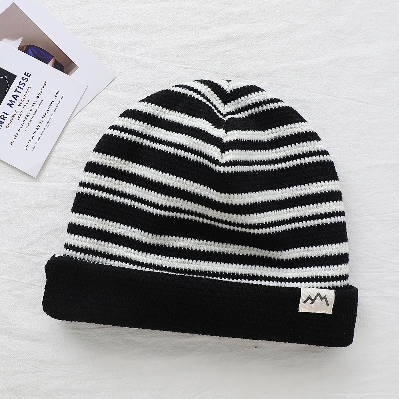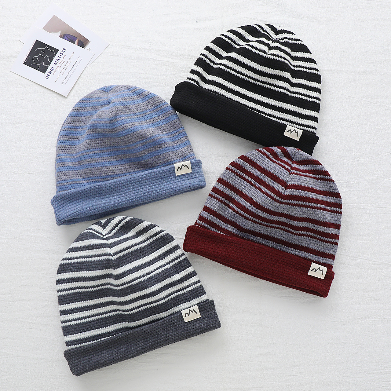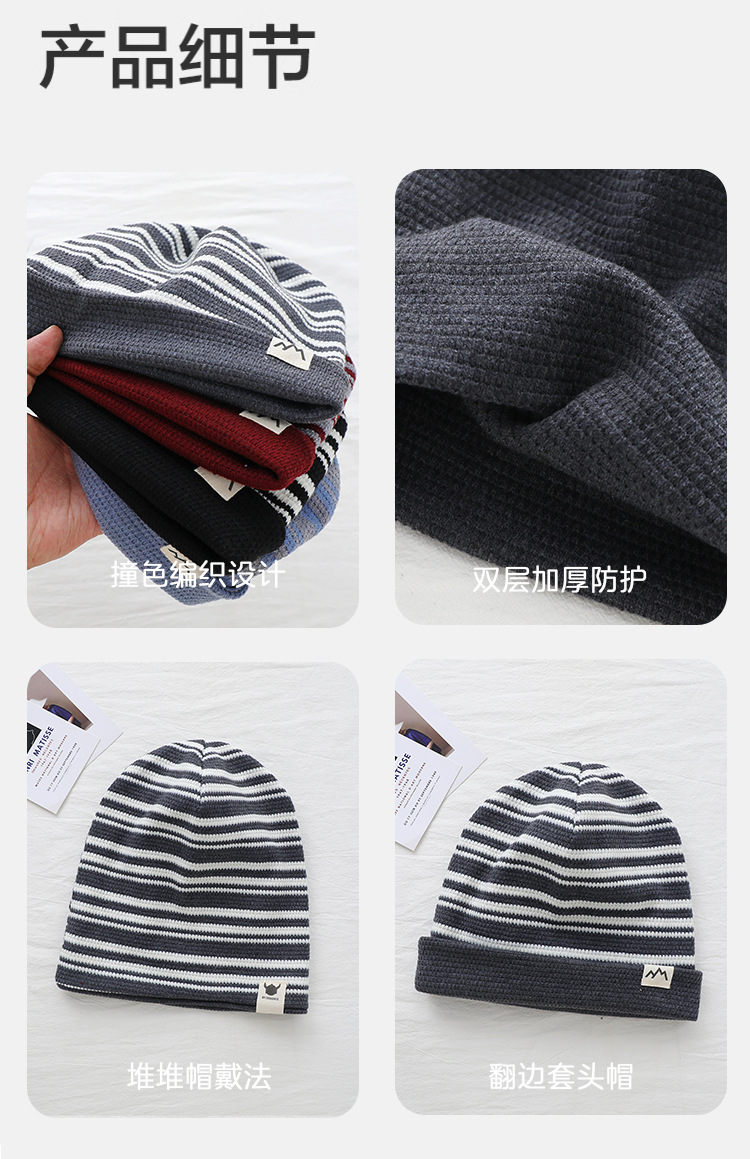 2025新款儿童帽子撞色可翻边戴男女童套头帽宝宝秋冬季保暖条纹帽