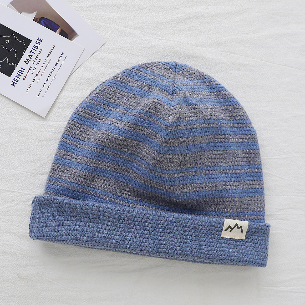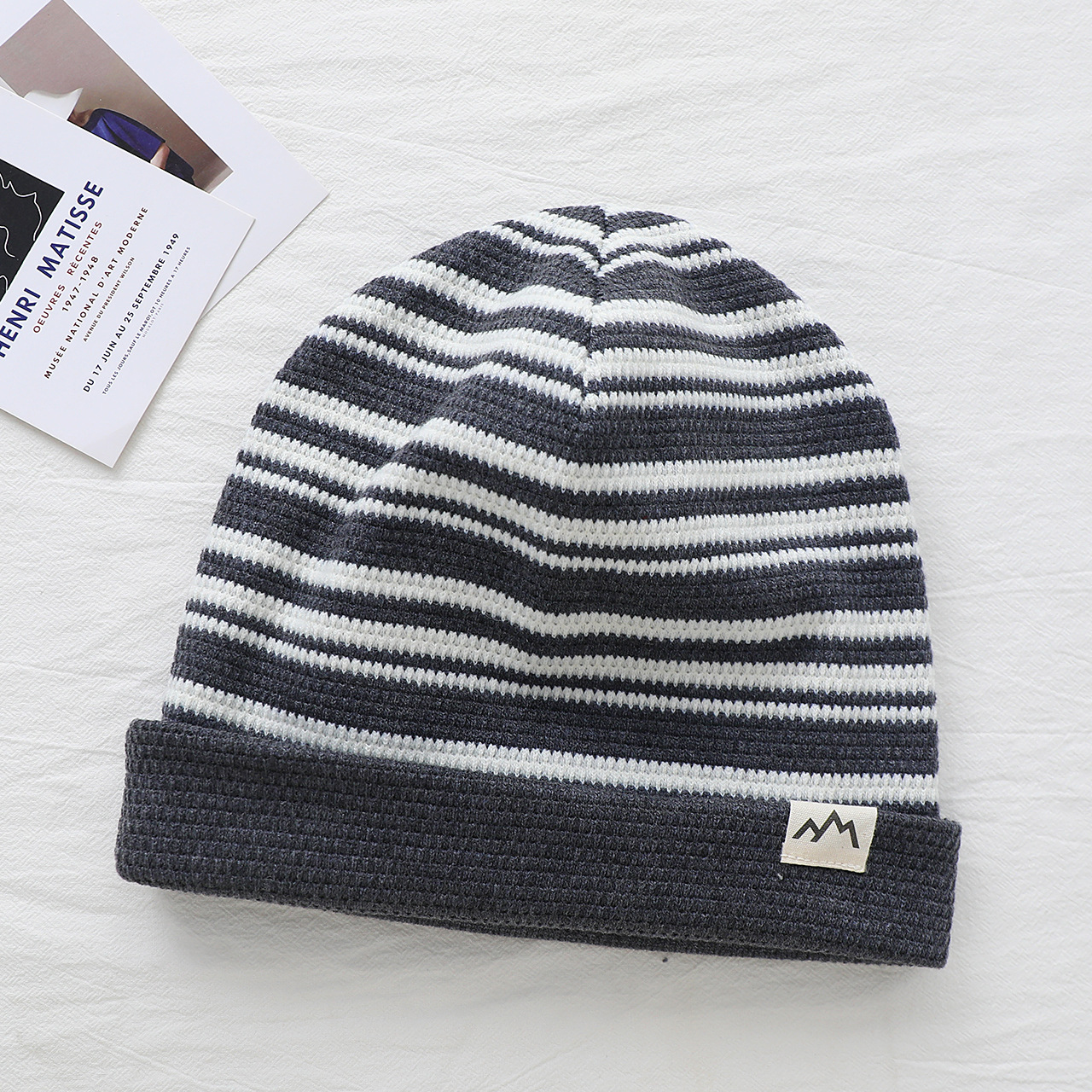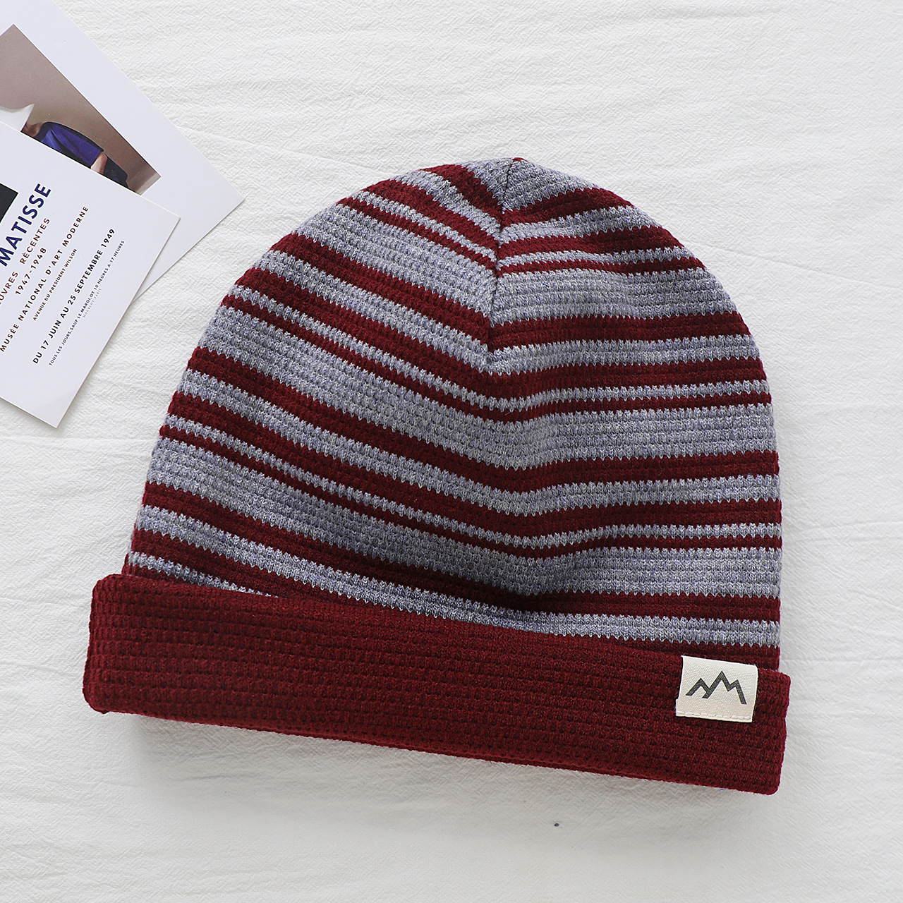 2025新款儿童帽子撞色可翻边戴男女童套头帽宝宝秋冬季保暖条纹帽