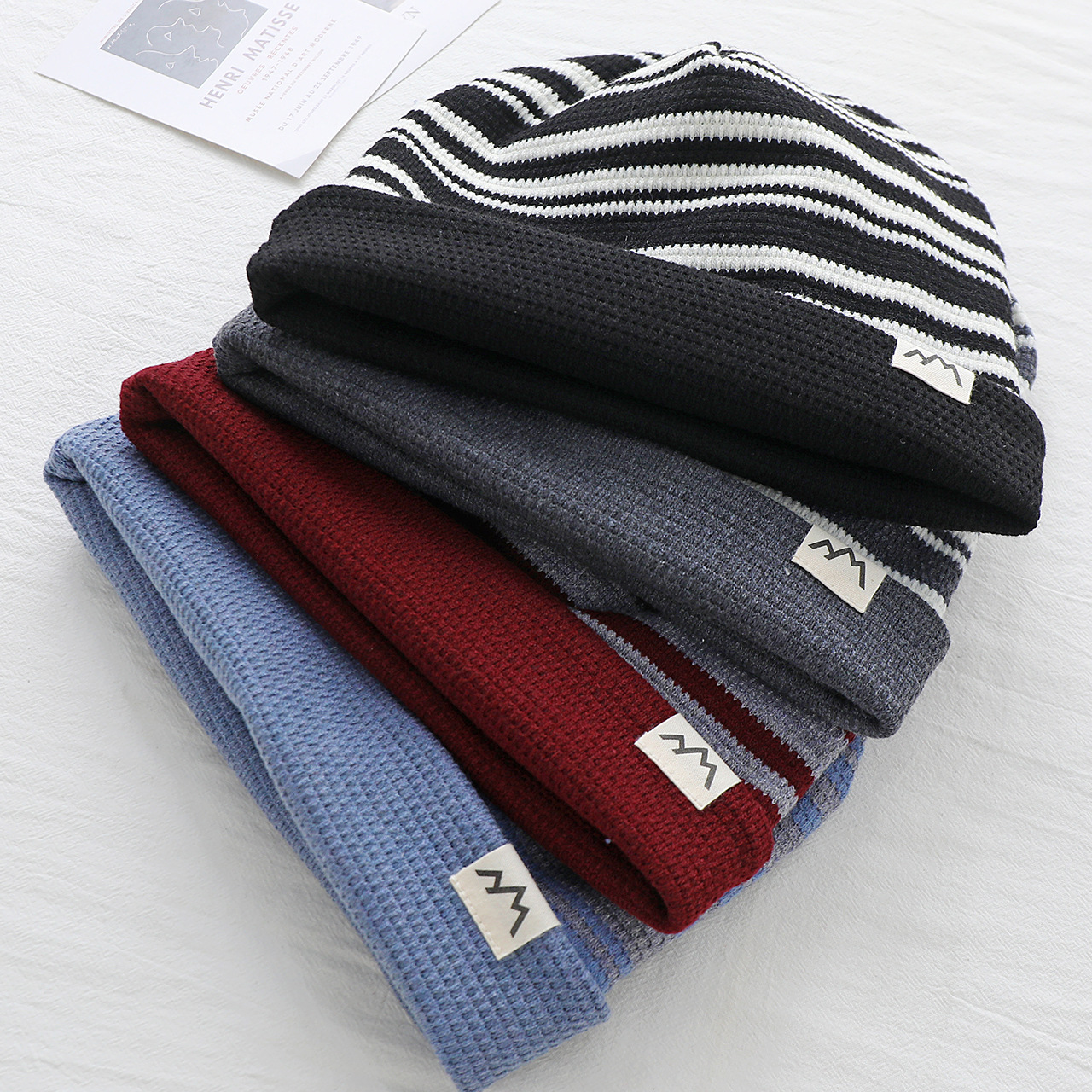25秋冬新作 二重構造の配色がおしゃれな中高生向けパイル帽 ベビー・子供用帽子 男女兼用 純綿プルオーバーハット
