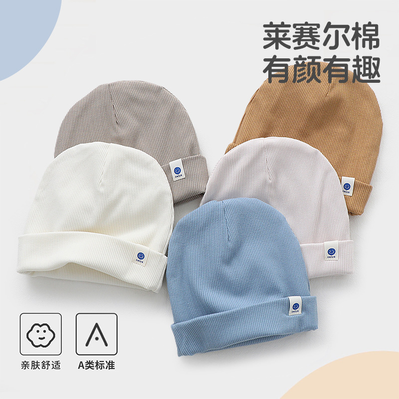 韩版新款莱赛尔棉双层翻边笑脸儿童帽子男女童宝宝防风保暖套头帽