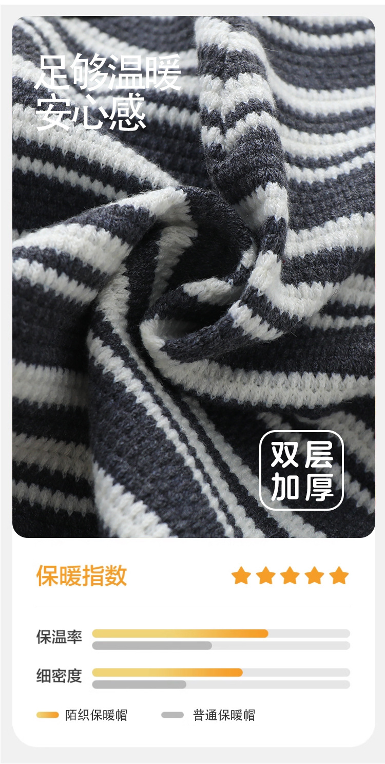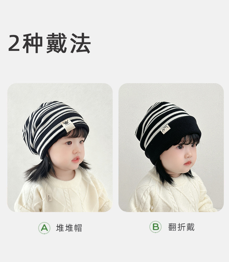 韩版儿童帽子秋冬季宝宝条纹针织帽男女童防风保暖护耳双层套头帽