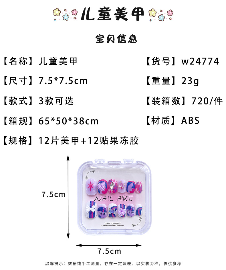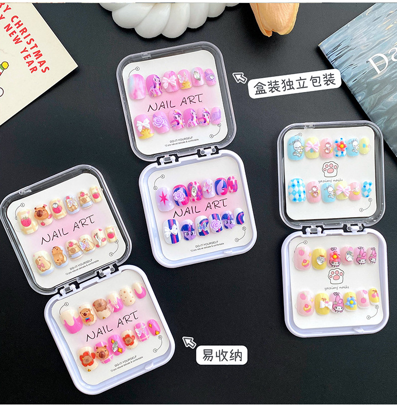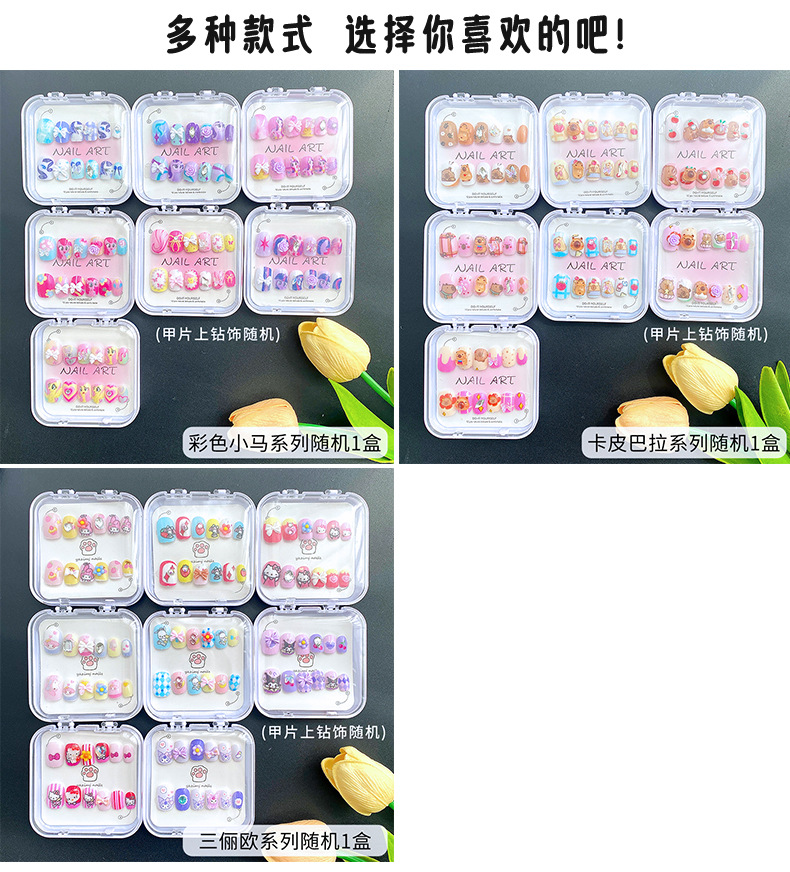 穿戴甲儿童短款美甲片穿戴式可拆卸假指甲贴片可爱卡通美甲合集