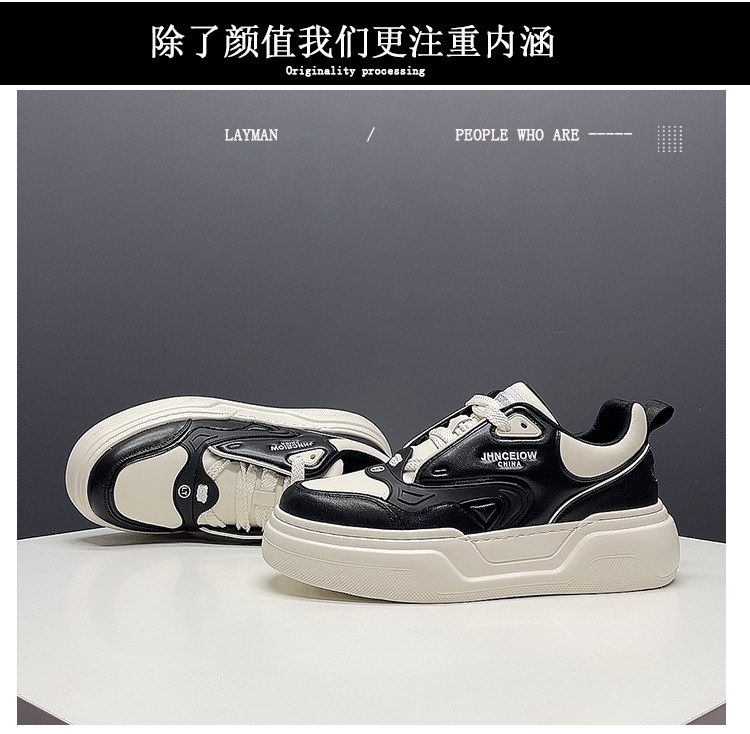 秋冬新款国潮透气厚底板鞋男设计感潮牌男鞋真皮休闲鞋子男高级感