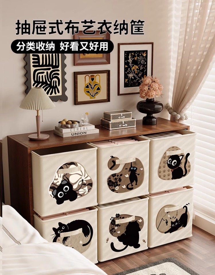 卡莱克收纳箱卧室床头柜中古风格子柜收纳筐电视机柜杂物收纳神器