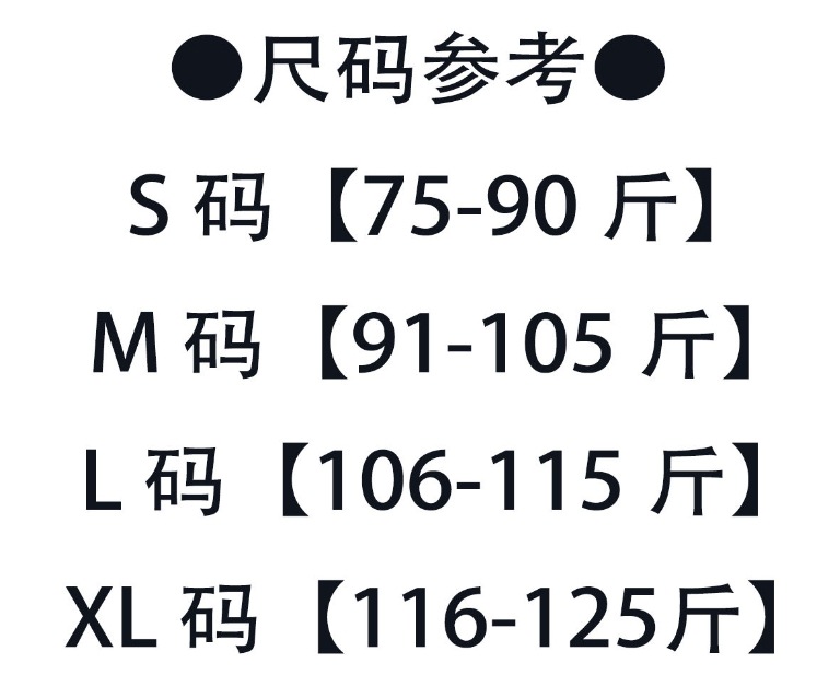 尺码 S(75-90),M(91-105),L(106-115),XL(116-125)