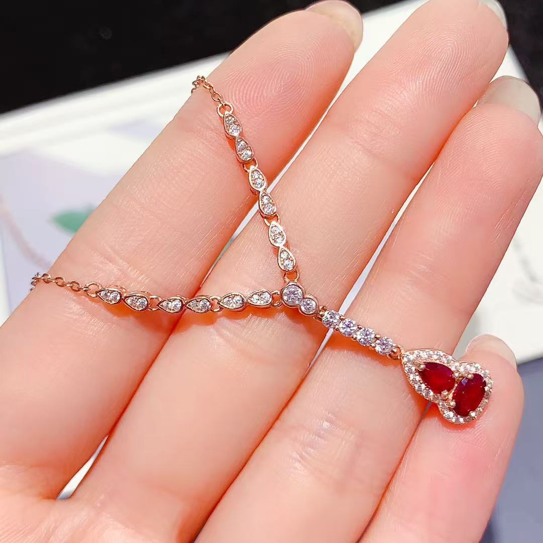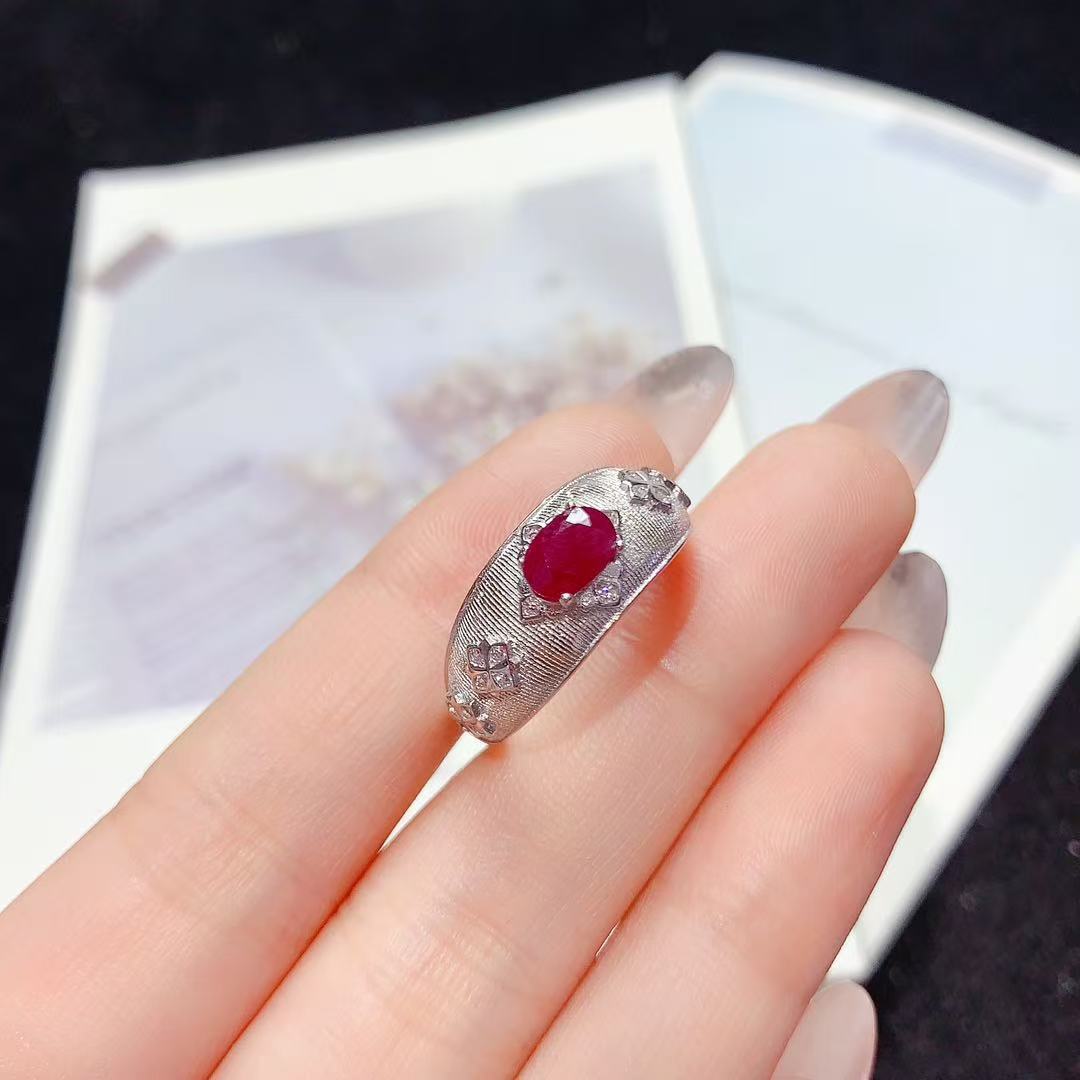 材质: S925银+天然老烧红宝石