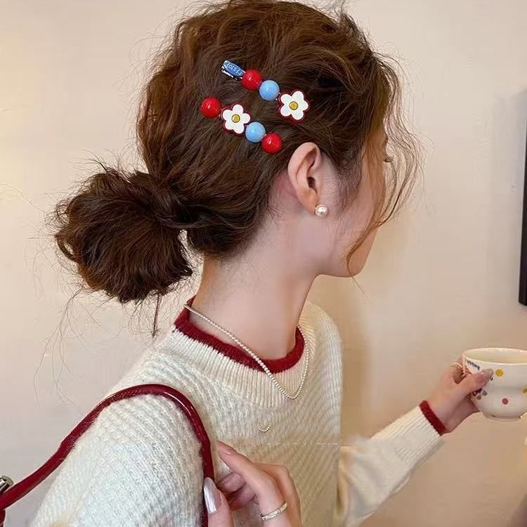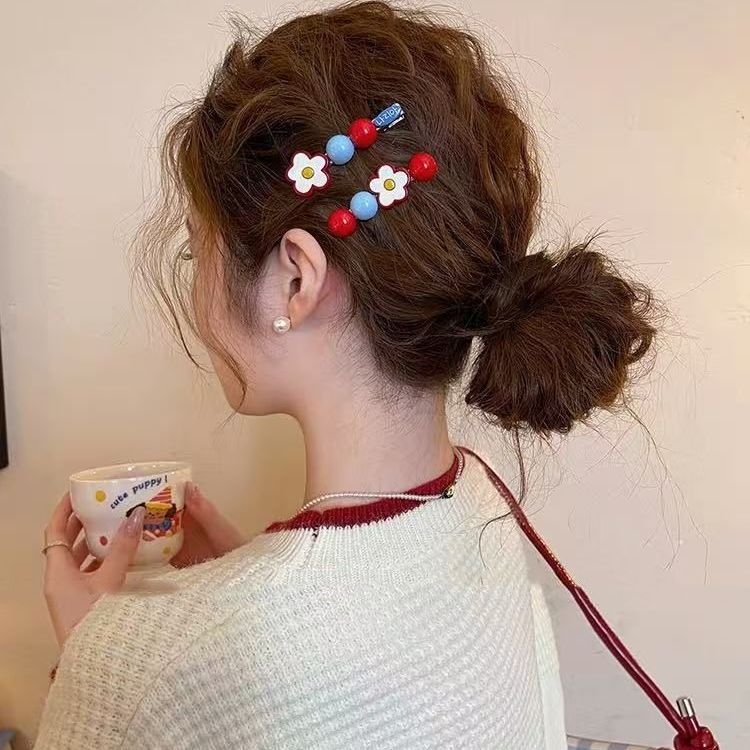 甜美红色花朵圆珠发夹韩系简约少女风碎发刘海发卡发饰批发新款夹