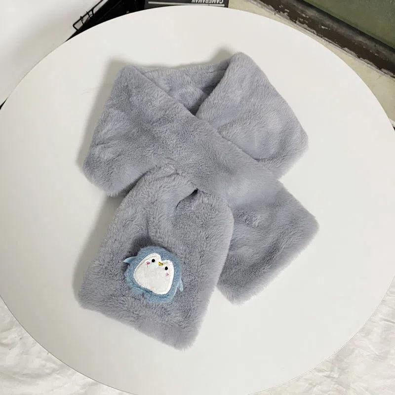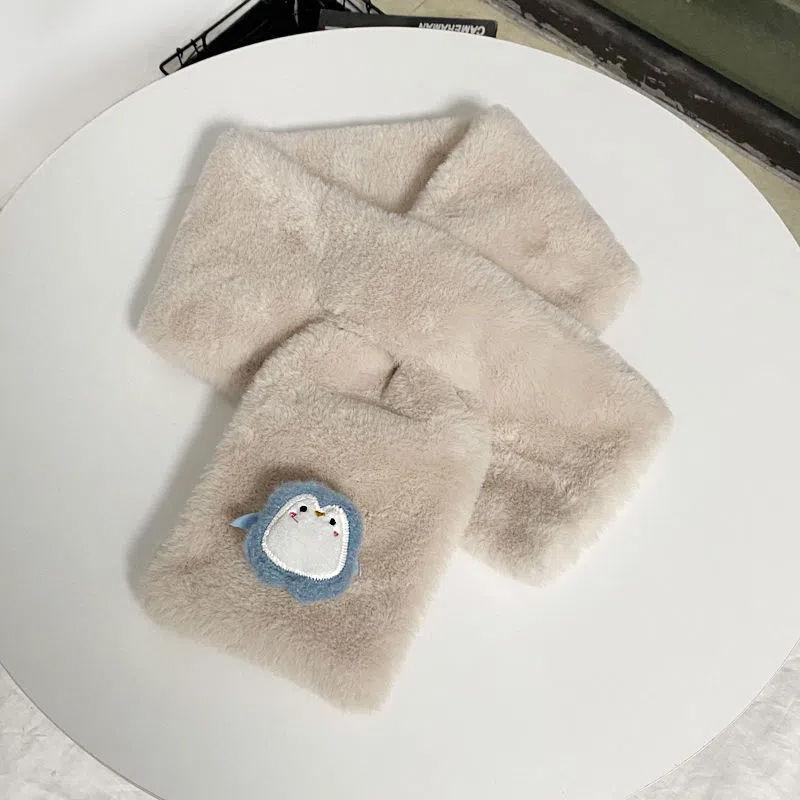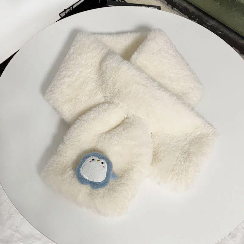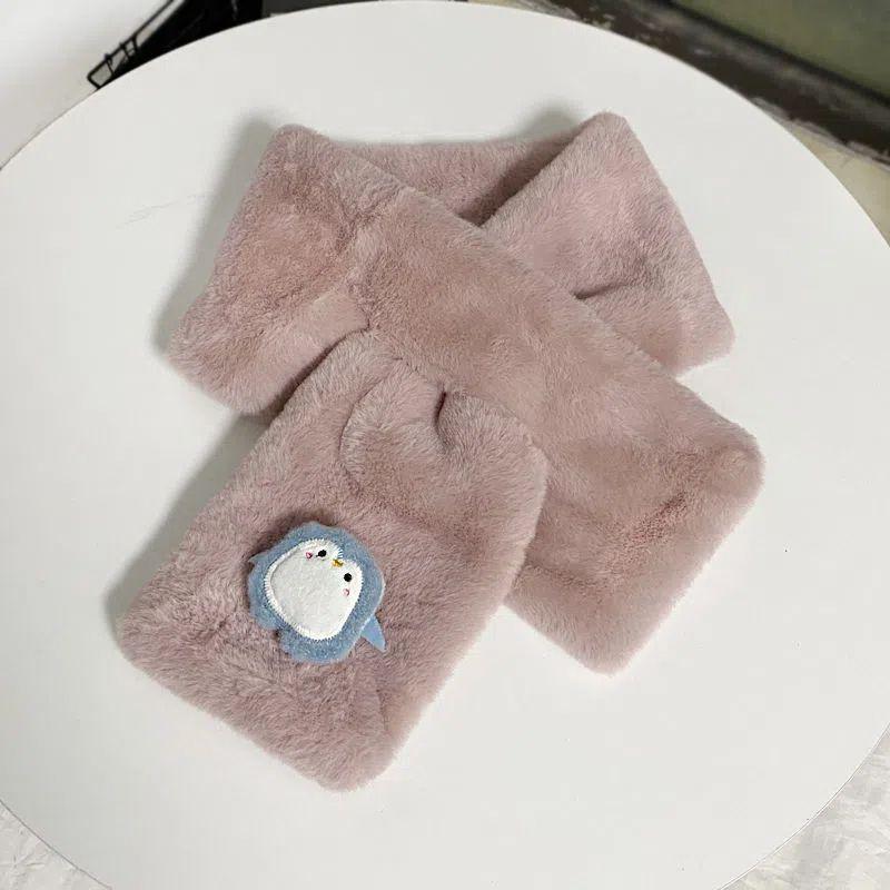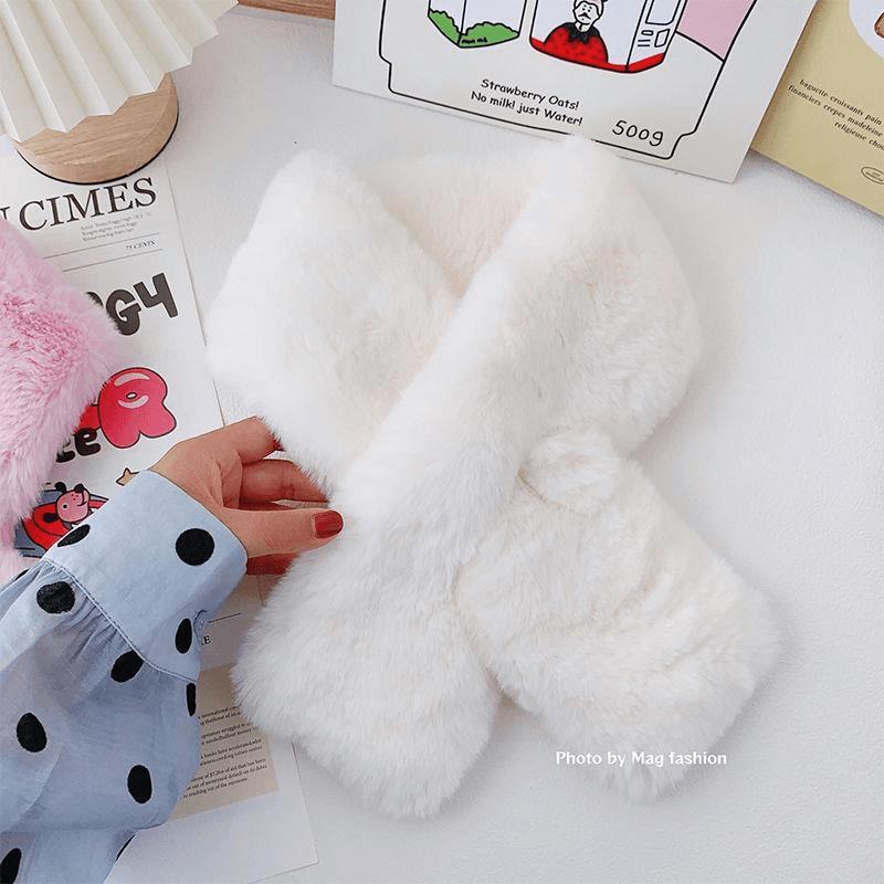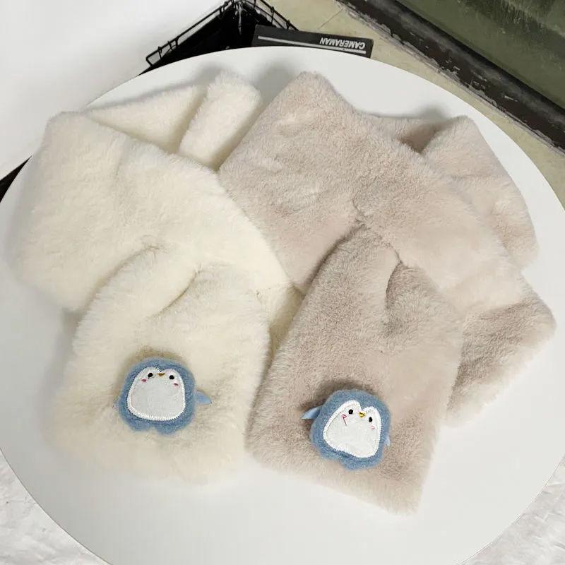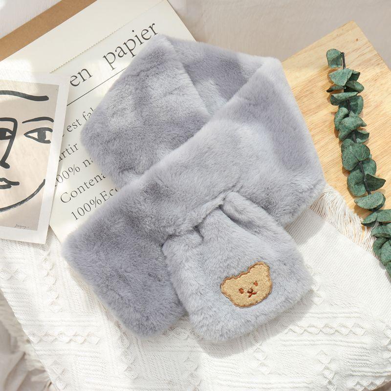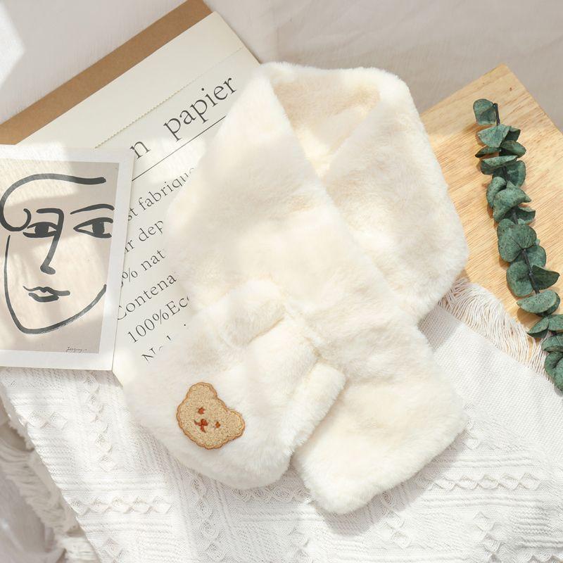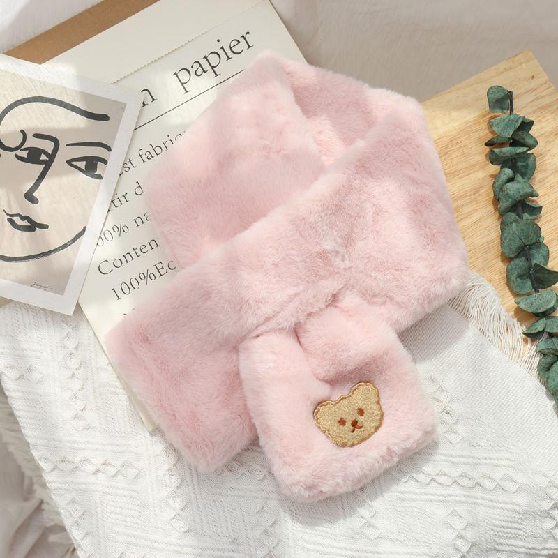 韩版小熊毛绒围巾可爱冬季ins风仿兔毛毛绒围脖交叉款学生百搭潮
