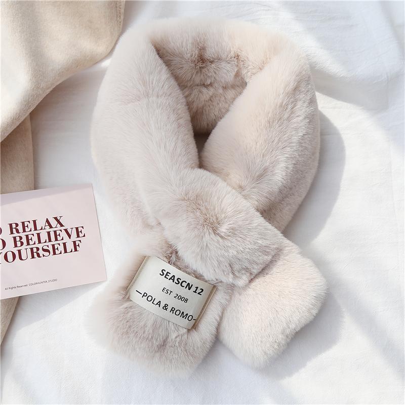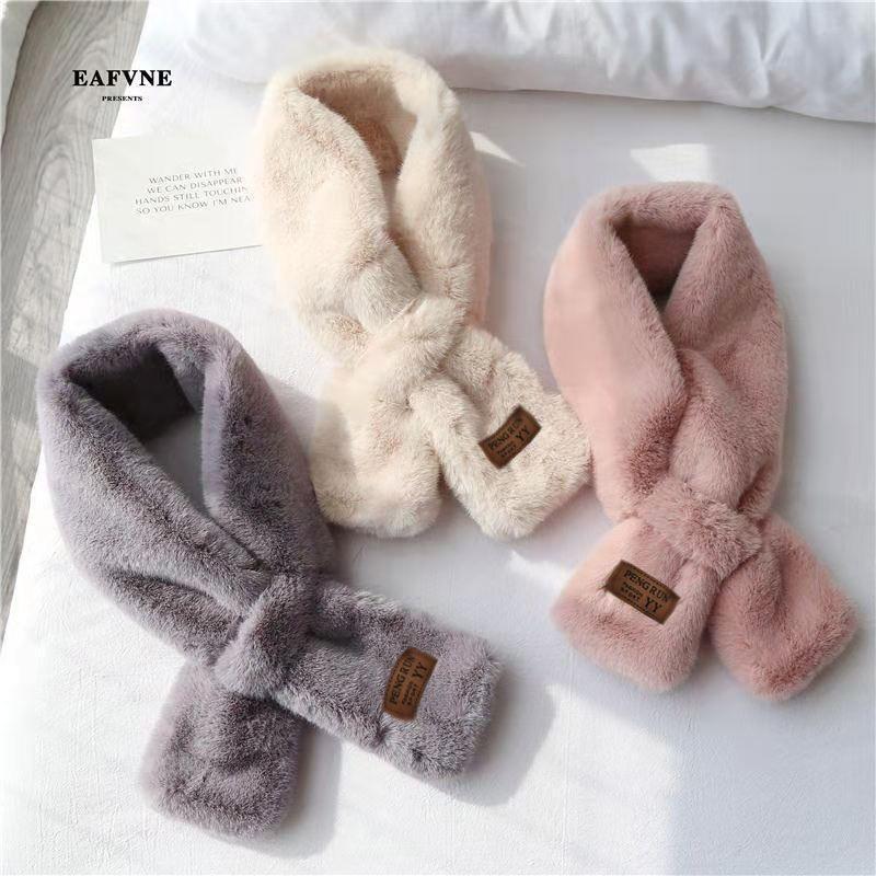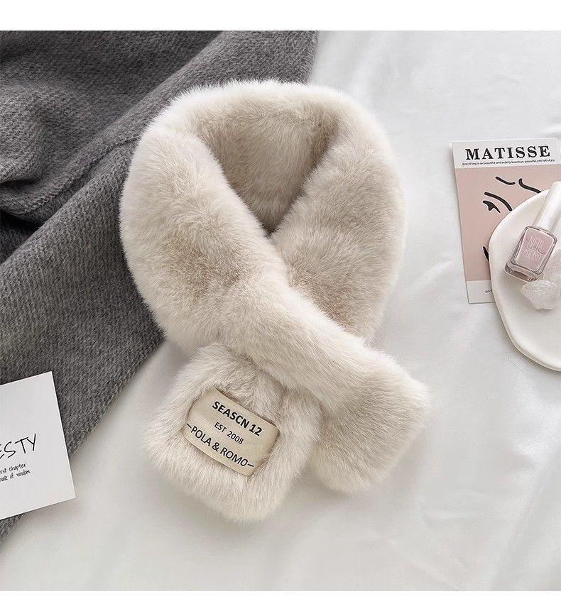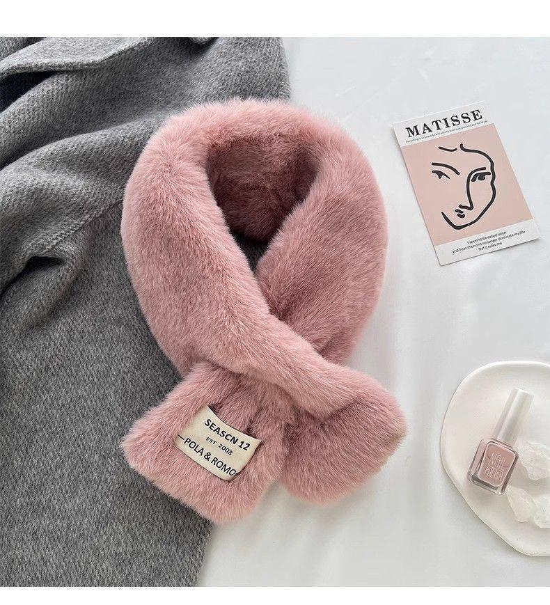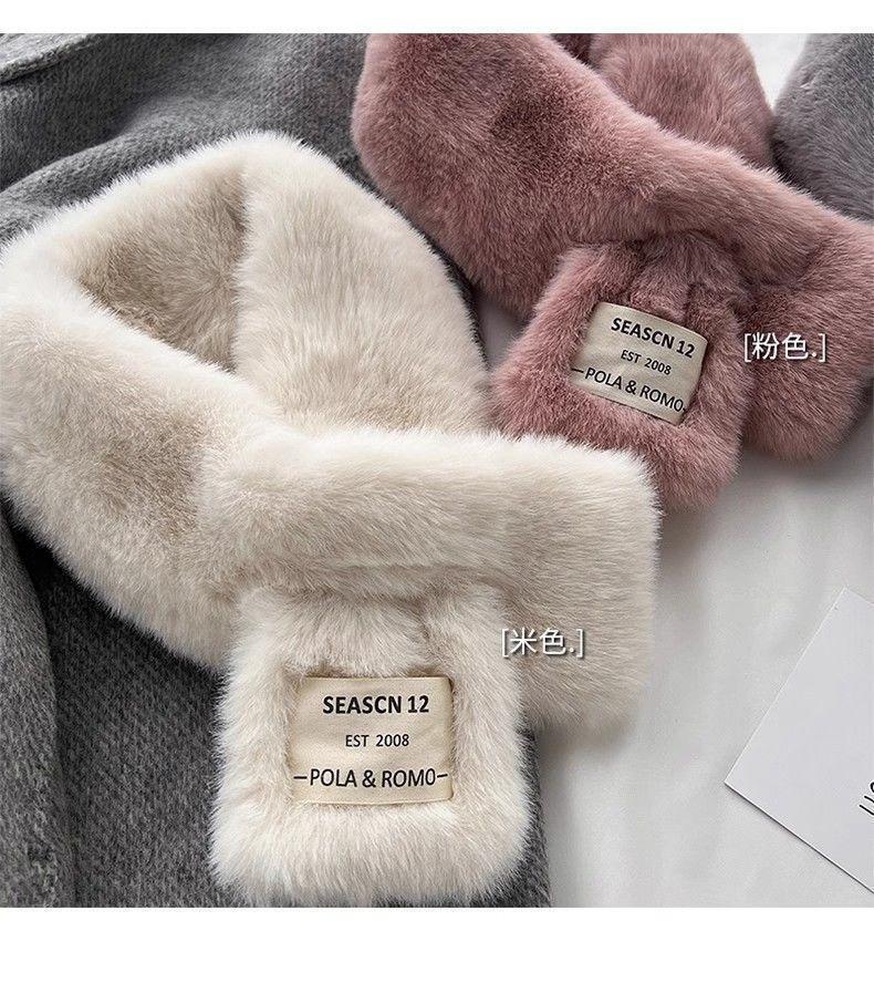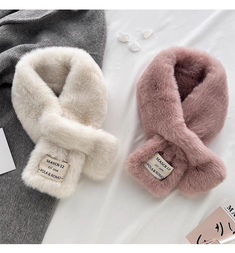 仿獭兔毛围巾女冬季日系ins保暖百搭毛绒交叉短款学生护颈小围脖