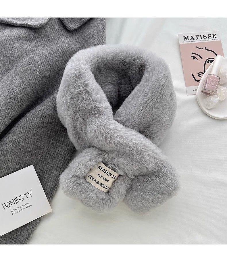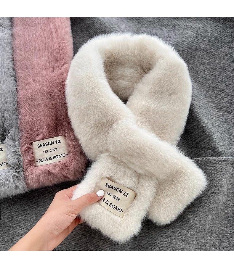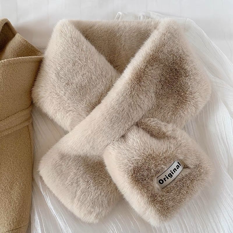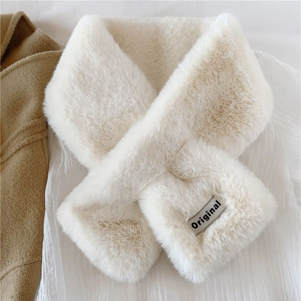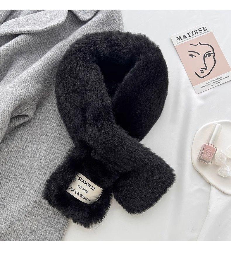 仿獭兔毛围巾女冬季日系ins保暖百搭毛绒交叉短款学生护颈小围脖