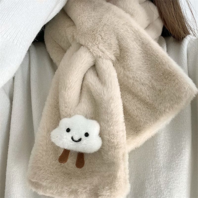 ins风韩版卡通云朵围巾围脖短款女可爱冬季纯色毛毛围巾百搭学生