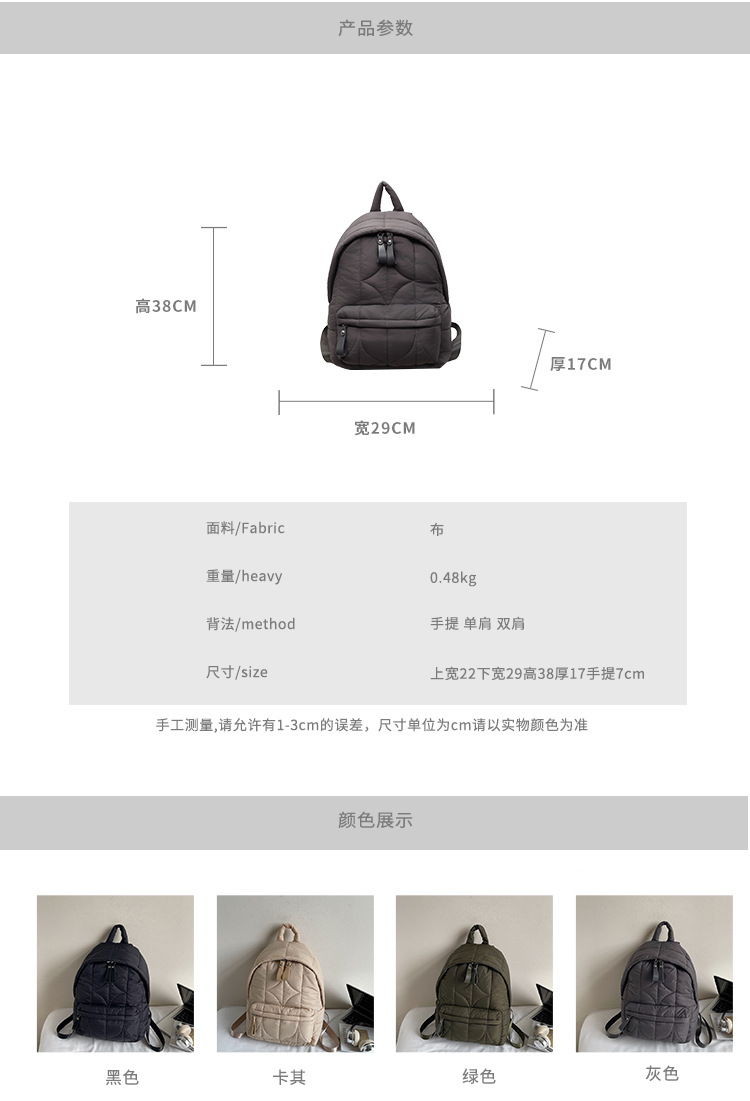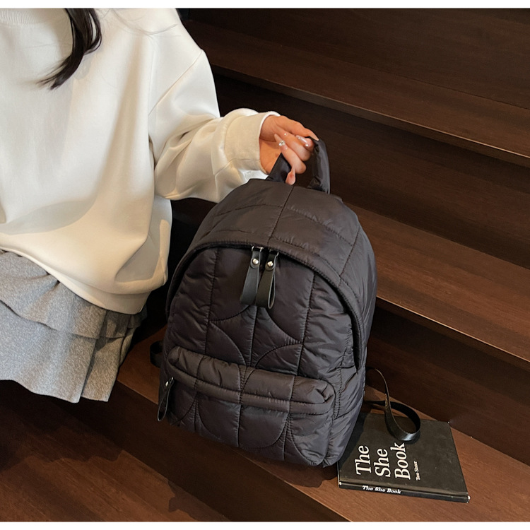 秋冬棉服背包跨境批发新款充棉女士双肩包多隔层通勤休闲小背包女
