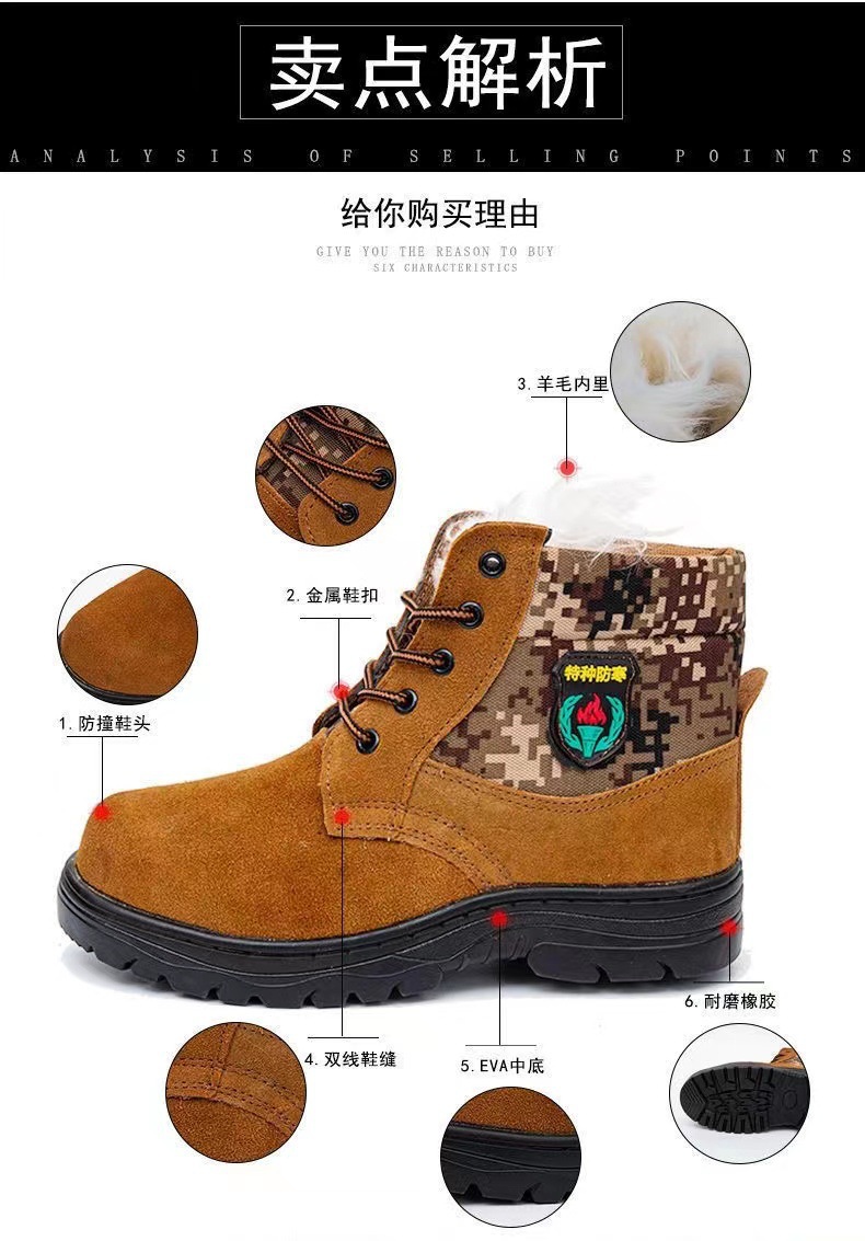 メーカー直販冬ウール牛革労働保護靴男は防寒保温雪地靴労働者工場の仕事靴を厚くした